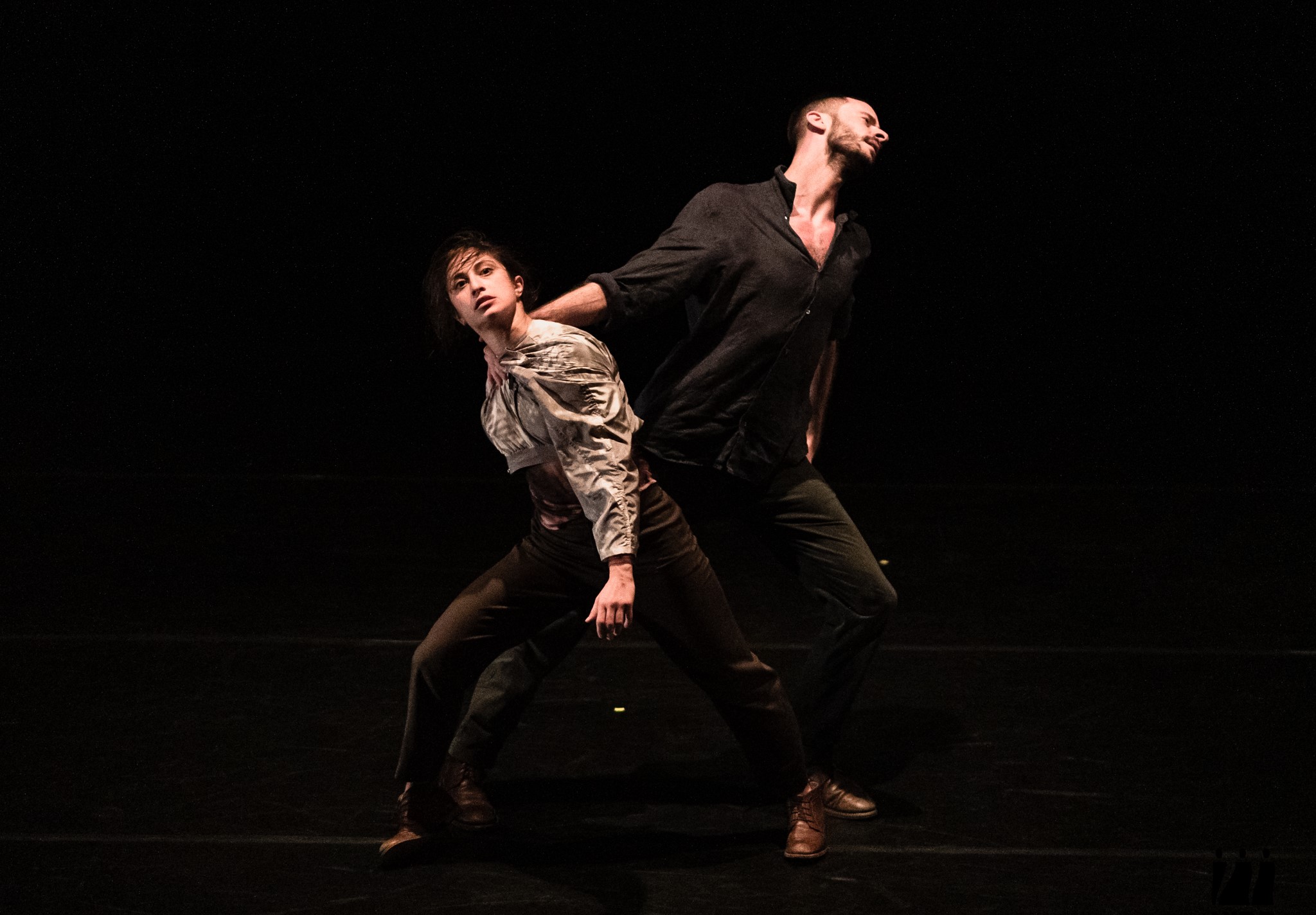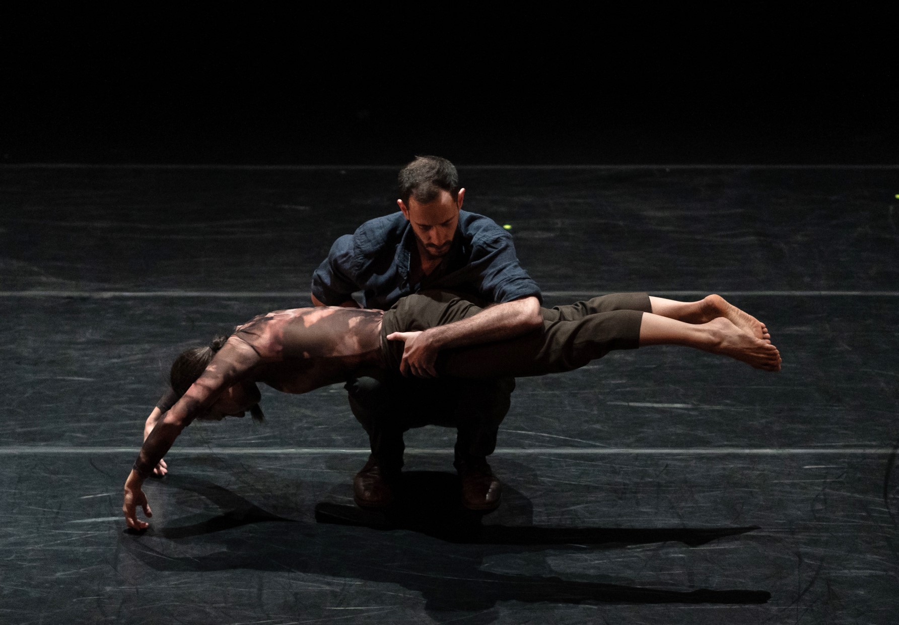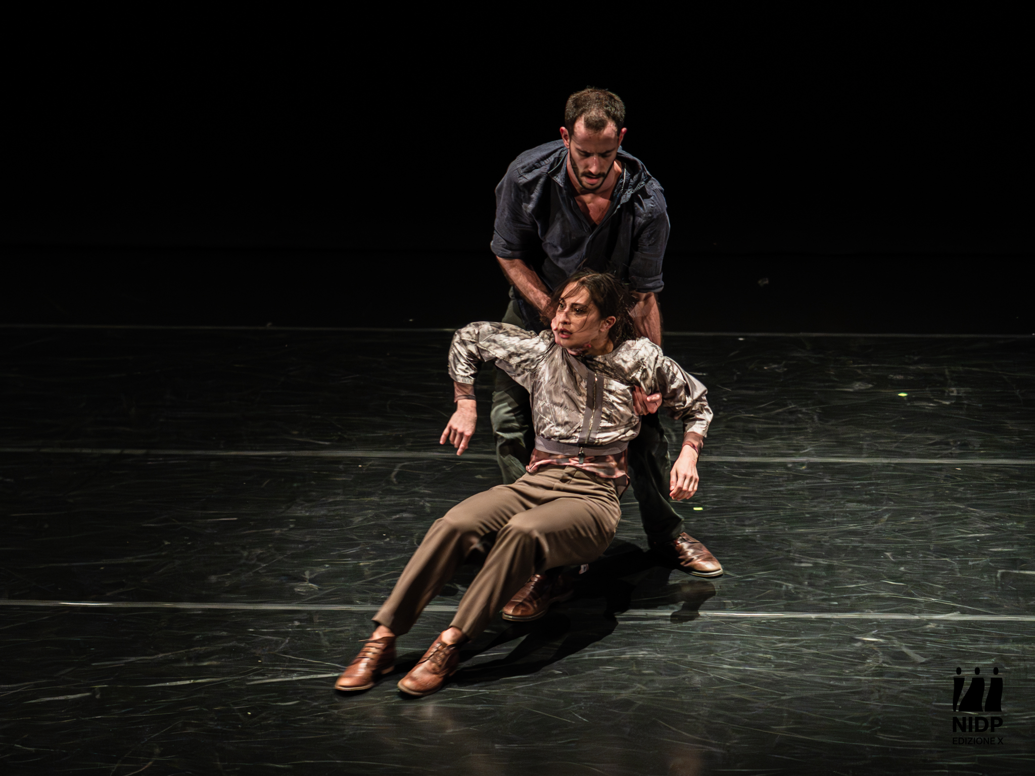 Nella penombra iniziale c’è lui rannicchiato in un angolo a terra, e lei in piedi, distante, che lo osserva, si guarda attorno, si infila una giacchetta. Buio. La scena seguente si apre con la stessa situazione ma ribaltata nelle parti. Ora è lui che si avvicina a lei sdraiata a faccia in giù, le muove una spalla, la testa, il bacino, che ricadono inerti. Riprova, la prende dentro le sue braccia sicure, ma lei gli scivola come acqua sfuggente. Quel corpo molle, sinuoso, flessuoso, è imprendibile. Lui insiste sollevandola sulle spalle, la ondeggia, la fa scorrere. È come un corpo morto che vuole rianimare, richiamare in vita. Finalmente in piedi, eccoli entrambi l’uno di fronte all’altra.