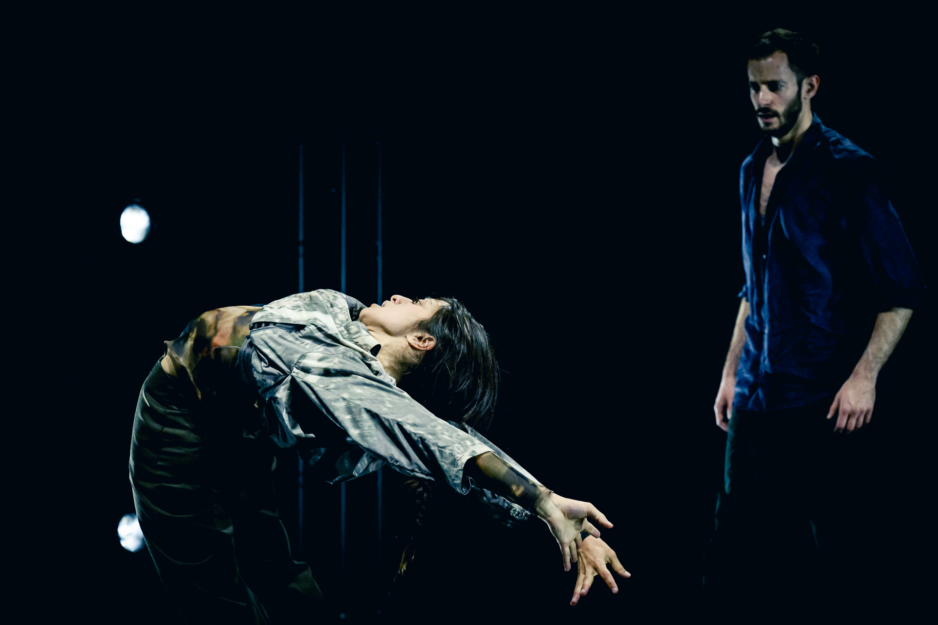 Nella penombra iniziale c’è lui rannicchiato in un angolo a terra, e lei in piedi, distante, che lo osserva, si guarda attorno, si infila una giacchetta. Buio. La scena seguente si apre con la stessa situazione ma ribaltata nelle parti. Ora è lui che si avvicina a lei sdraiata a faccia in giù, le muove una spalla, la testa, il bacino, che ricadono inerti. Riprova, la prende dentro le sue braccia sicure, ma lei gli scivola come acqua sfuggente. Quel corpo molle, sinuoso, flessuoso, è imprendibile. Lui insiste sollevandola sulle spalle, la ondeggia, la fa scorrere. È come un corpo morto che vuole rianimare, richiamare in vita. Finalmente in piedi, eccoli entrambi l’uno di fronte all’altra.