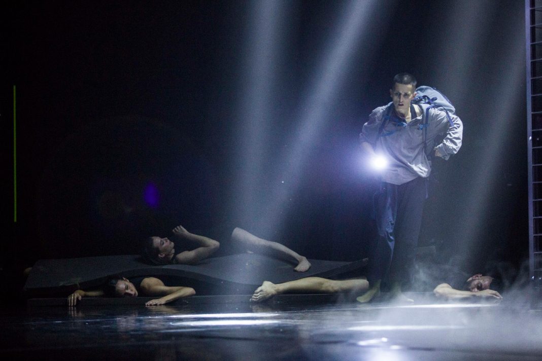 Lo spettacolo vede la partecipazione dell’attore Giacomo Ferrara, giovane rivelazione dell’anno conferitogli ai Nastri d’Argento 2017 e conosciuto per il personaggio di “Spadino” nella serie Netflix “Suburra”. I testi visionari sono di Hube-Marco Ubertini (riadattati teatralmente da Eleonora di Fortunato). Il disegno sonoro, attraverso sinfonie fatte di sonorità dense, distorsioni melodiche, suggestioni post-rock, neopsichedeliche, ambient/elettroniche, è a firma della band Mokadelic, nota al grande pubblico per aver composto le colonne sonore di “Gomorra”, “Sulla mia pelle” e “Romulus”. Non da ultimi, la partecipazione del rapper WhiteBoy, il disegno o meglio la scultura di luci di Alessandro Caso, i costumi di Gloria Pasquali e gli straordinari danzatori di [Ritmi Sotterranei] contemporary dance company: Vanessa Guidolin, Viola Pantano, Matilde Cortivo, Greta Martucci, Rebecca Pantano, Alessandra Fanella, Daniele Toti, Anthony Dezio, Gianluca D’Alò, Andrea Bouothmane, Alessandro Plos, Francesco Colella.