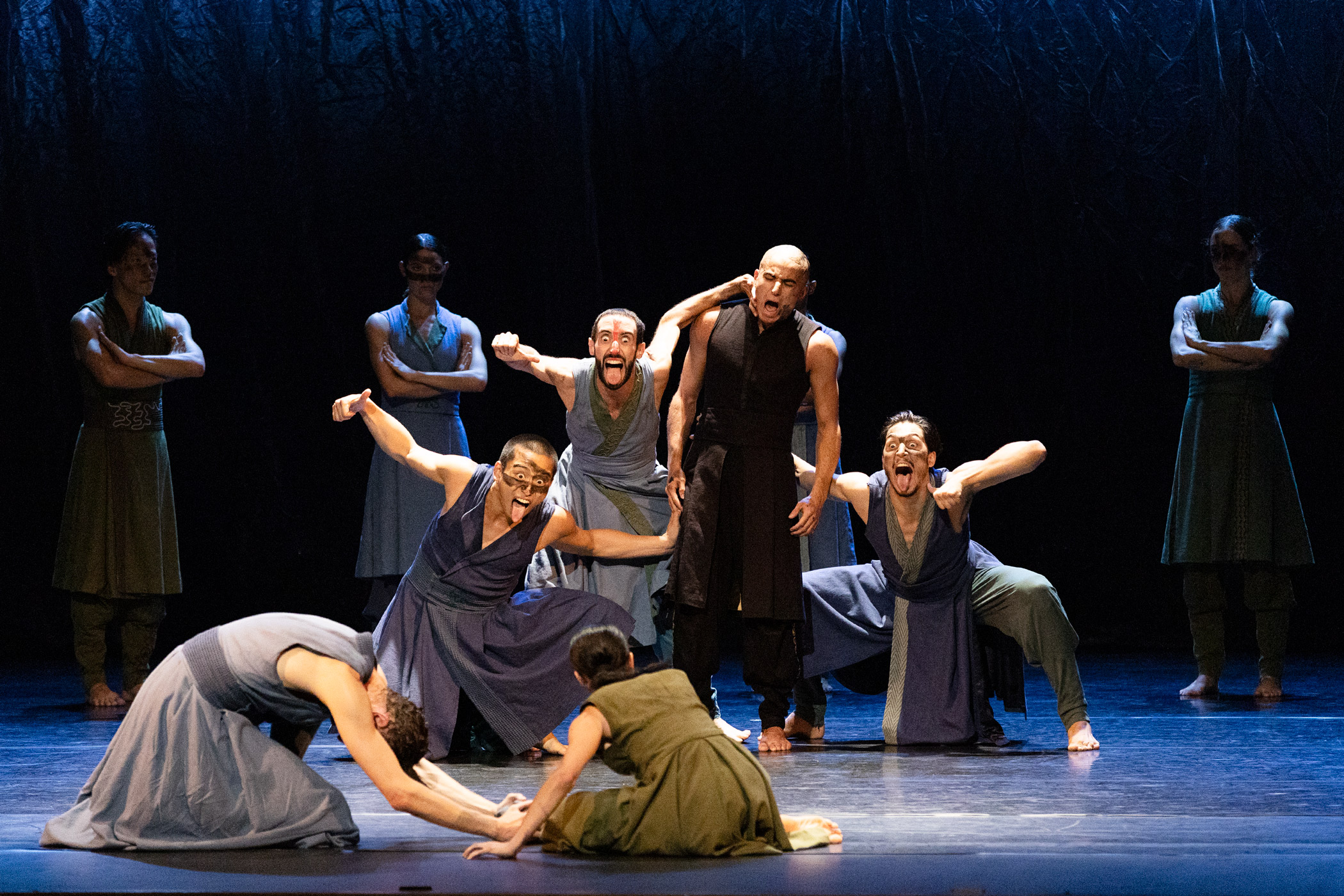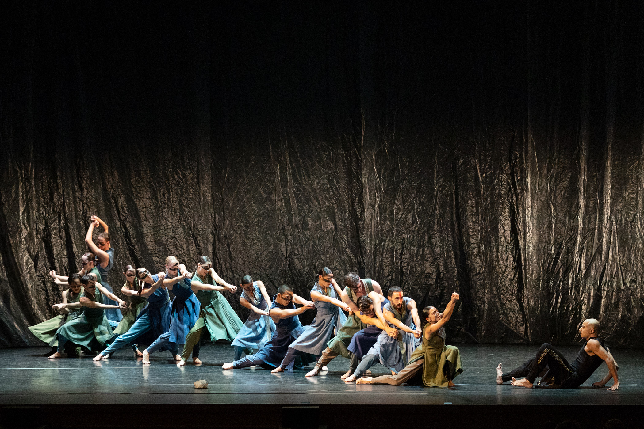 Tra i debutti più attesi c’era Turning of bones di Akram Khan per la Gauthier Dance//Dance Company Theaterhaus Stuttgart. Per questa creazione, il coreografo e danzatore anglo-bengalese, classe 1974, ha armonizzato, modificandoli, alcuni estratti di suoi precedenti lavori (riconosciamo sequenze da Desh, ItMoi, Jungle Book, Mud of Sorrow, Insirgents) legati al tema del rapporto con la Terra, della vita e della morte, e della ricerca dell’identità.