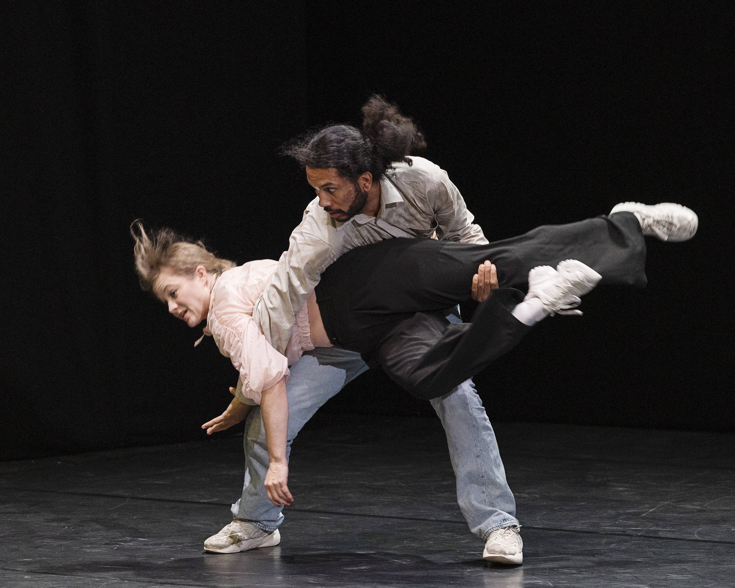 Tra i migliori duetti abbiamo apprezzato Sarah Baltzinger e Isaiah Wilson nel loro spettacolo Megastructure, coppia d’ineccepibile tecnica e dai corpi plasmabili, declinati in sorprendenti forme e stili che spaziano dalla cifra contemporanea alla breakdance e l’hip-hop, con leggerezza e ironia nel silenzio e nel rumore dei soli corpi in movimento coi loro respiri, in un flusso interiore ininterrotto che scorre tra desiderio e indifferenza, vulnerabilità e forza, tenerezza e aggressività, attrazione e repulsione. Tutto questo espresso con incastri e contorsionismi degli arti l’uno nell’altra subito sbrogliati, a volte con fatica ma sempre con naturalezza.