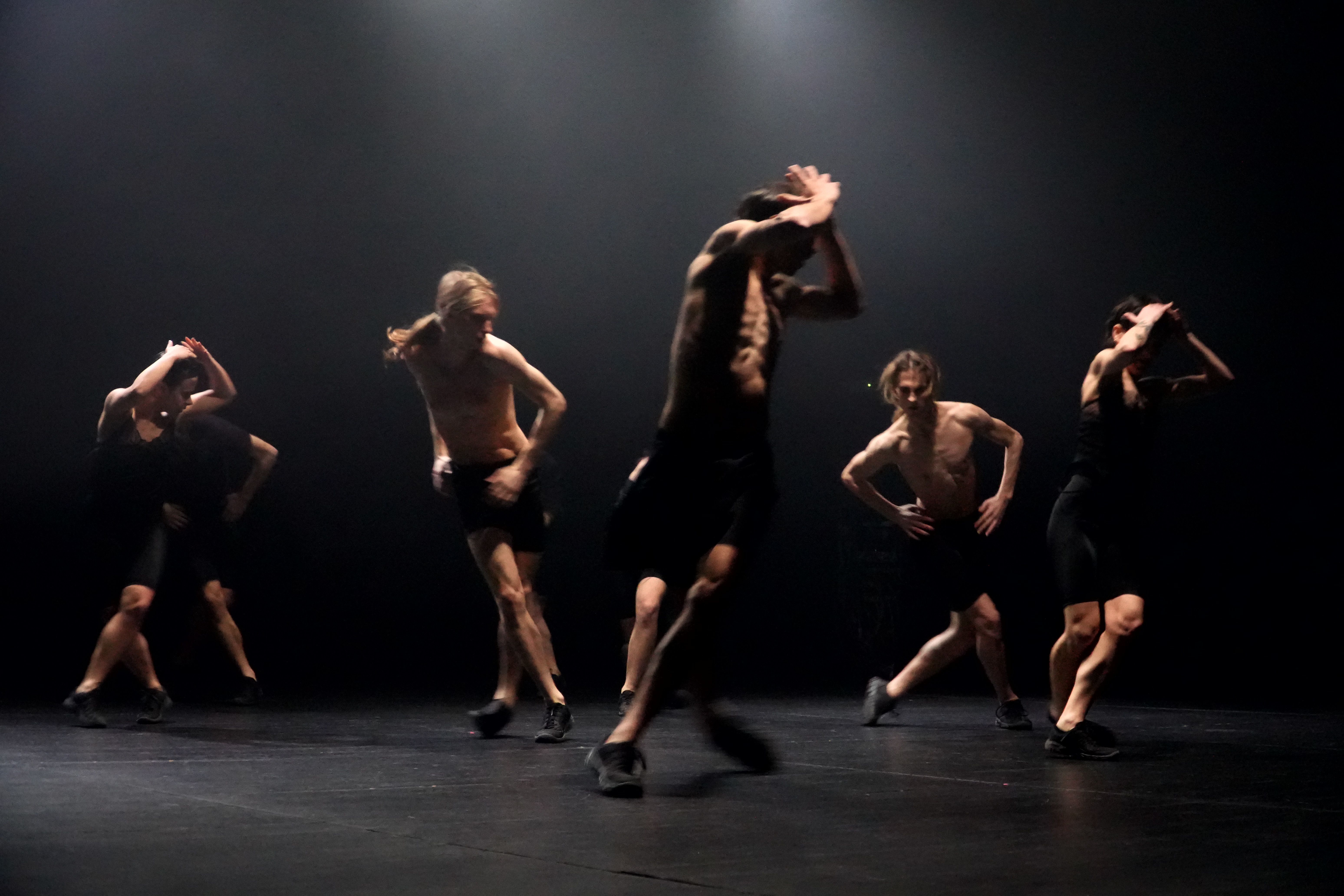 L’aprirsi nuovamente del sipario, ci immette così nella scena del secondo spettacolo: Wolf Spider. A firmarlo sono Mattia Russo e Antonio de Rosa dei Kor’sia, un affermato collettivo di base a Madrid. Tra le molte commissioni che i due coreografi ricevono in giro per l’Europa, c’è stata, lo scorso anno, anche Wolf Spider per la compagnia ResExstensa (ne scrivevamo qui). Mito, tradizione e contemporaneità, nello stile di Kor’sia si intrecciano in un unicum dalla scrittura coreografica stilizzata e cinetica, rarefatta ed esplosiva, minuziosa e aperta, dove i danzatori attingono, nell’idea, all’emblematica “tarantata” – la figura vittima del morso del ragno -, ma restituita in movimenti traslati, astratti, evocativi.