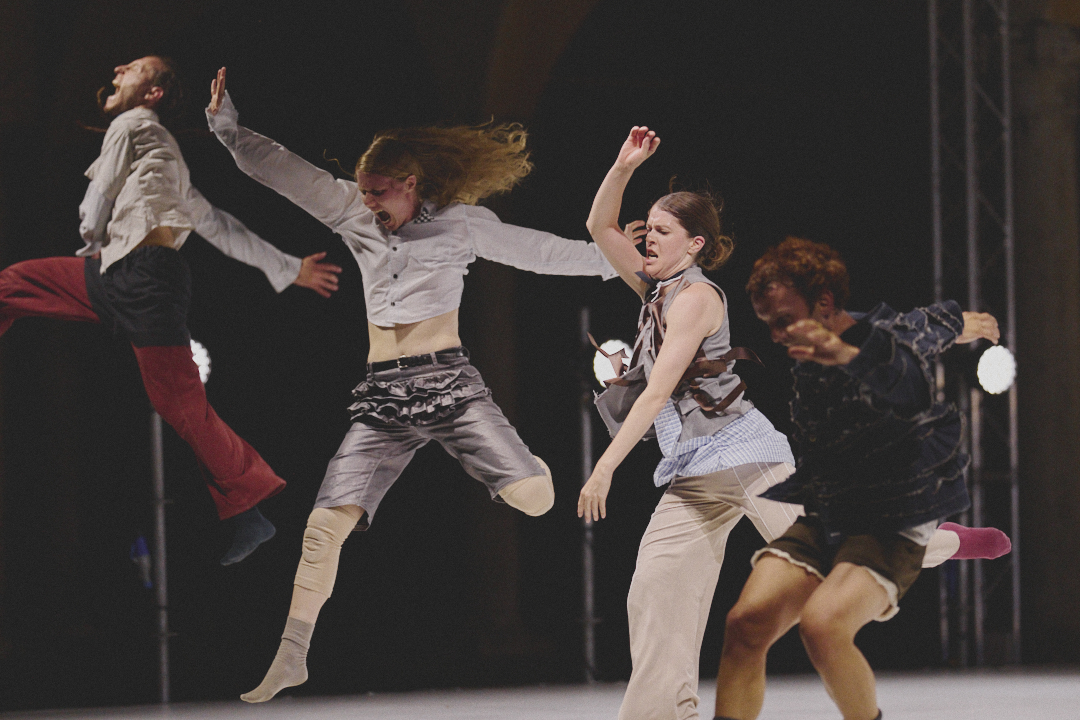 Frutto di uno studio sulla lingua parlata e sul suo legame con il corpo, Folklore Dynamics dei coreografi e danzatori di VIDAVÈ, Noemi Dalla Vecchia e Matteo Vignali – in scena con altri tre performer -, attingono a storie, proverbi, giochi, superstizioni e gesti delle diverse tradizioni popolari italiane. Intesi a creare un forte senso di collettività, tra ritmi percussivi, voci, rivolte, risa, incantamenti, mutando abiti e maschere, i cinque bravi danzatori ricercano forme e rituali gestuali tradotti in movimenti corali e singoli, a tratti però un po’ confusi.