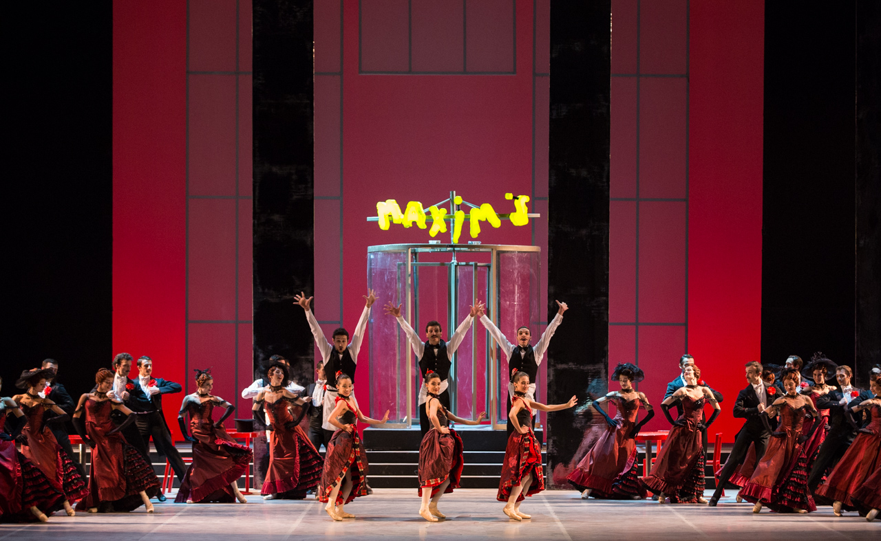 La danza è brillante; non un momento di noia! La struttura è tradizionale, lo stile è classico, con un bellissimo passo a due e un regolare divertissement (Czardas, Che Maxim’s, mascherata, gran valzer, terzetto dei camerieri scatenati). Il coreografo lavora sul ritmo e sulla musica, tutto è veloce, senza pause, le difficoltà e i passi di bravura abbondano. È un balletto (ripreso da Luigi Bonino) di grande impegno, fatto di forza ed eleganza, con cornice le scene lineari di Jean-Michel Wilmotte, e i costumi di Luisa Spinatelli.