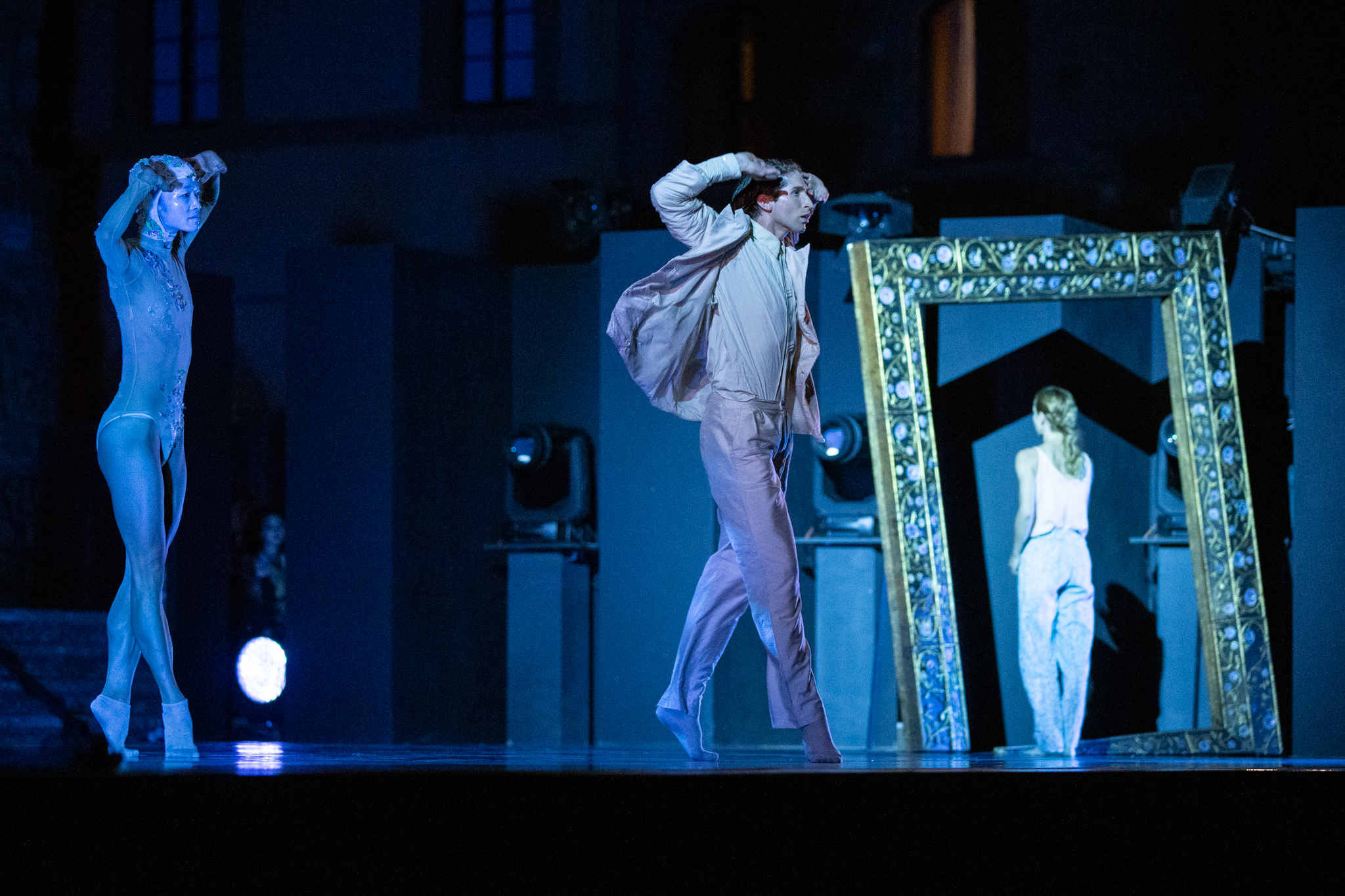 Focus drammaturgico è l’esplorazione del demone dell’insoddisfazione umana, la ricerca di identità, il percorso di transizione reso da una serie di sequenze di danza che ripercorrono l’intera vicenda. A fare da perno è un intrattenitore che al microfono, come in uno show, dà l’avvio ai diversi quadri. Sarà lui a creare le relazioni tra i personaggi spingendoli ad affrontare i loro traumi e guidandoli attraverso i loro ricordi. Entrerà fisicamente nei loro intrecci danzati, fino a vestire anche i panni di chirurgo per l’operazione di Einar che infine apparirà seduto su una carrozzella trascinato dalle tre figure della sua mente: una catarsi finale in cui egli trasformerà la morte in metamorfosi e con struggente ironia, lascerà la scena a Lili, finalmente pronta per il suo sfavillante show.