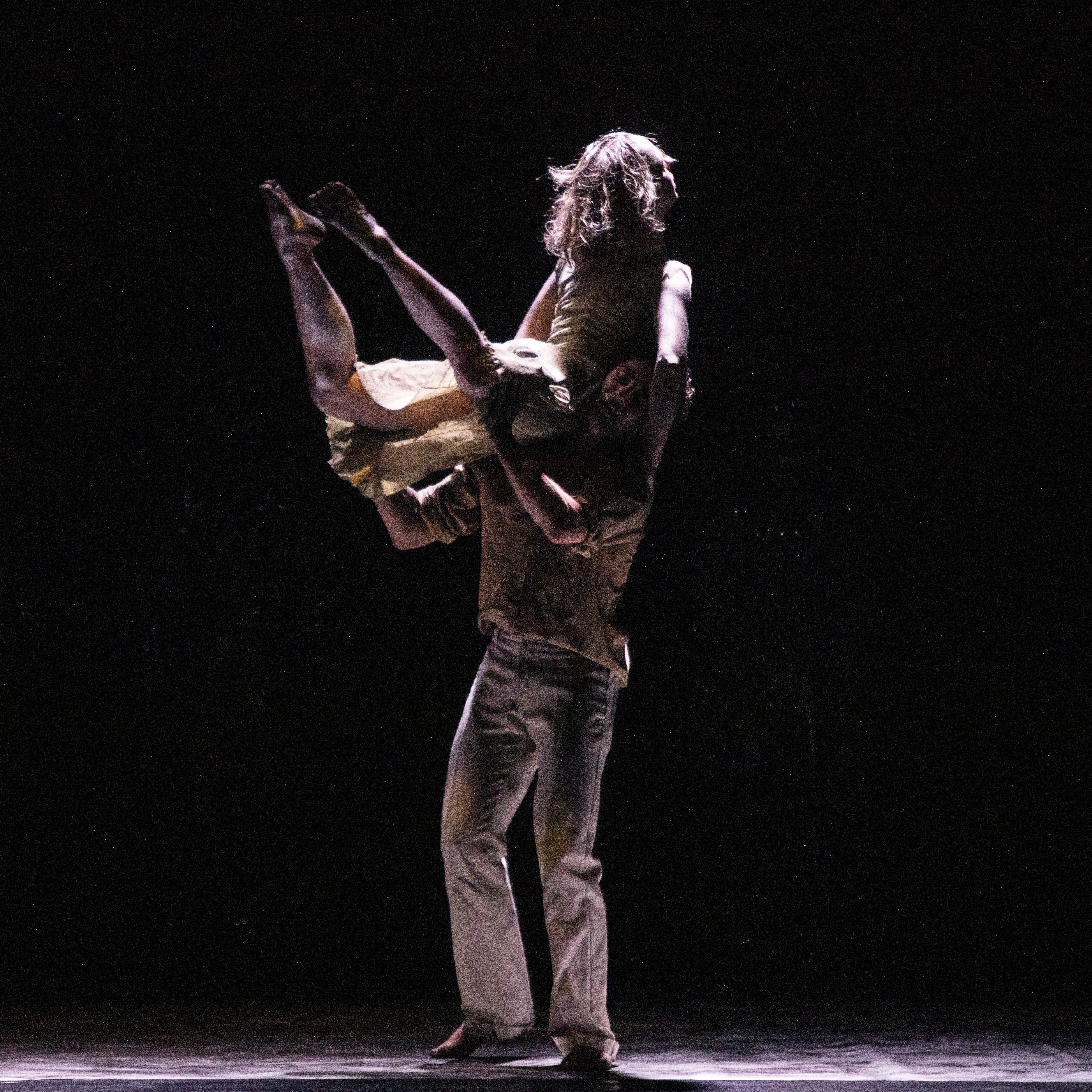 Una gestualità minimalista, quotidiana, pulsante, quasi a ricercare il ritmo del cuore, vibra nei corpi di Zarah Frola e Andre Cheldi nel duetto Another day, dei coreografi toscani Roberto Doveri e Emma Zani di Yoy Performing Arts, la cui cifra stilistica, riconoscibile, ha il nitore del dettaglio. Il senso dell’attesa muove gli animi della coppia, nell’esplorazione di uno spazio che li divide, li allontana, li avvicina, li fa incontrare armonizzando a tratti le stesse movenze, le posture, gli sguardi. E avvince fortemente il contrasto e poi l’unisono di movimenti che hanno nelle braccia, nelle mani, nei visi, una scrittura eterea e concreta, intima e aperta. Oscillanti, lenti, scattanti, ieratici, rotolanti, vacillanti, sdraiati o in piedi, posizionandosi ai lati o al centro, camminando o fermi a terra, distinti o insieme, i due tessono un dialogo gestuale evocativo che ascolta, indica, scruta, attende qualcosa o qualcuno. Ed è l’emozionale paesaggio sonoro creato da Timoteo Carbone a evocare una spazialità che suggerisce una soglia, un confine della memoria e del tempo, da fermare e contemplare.