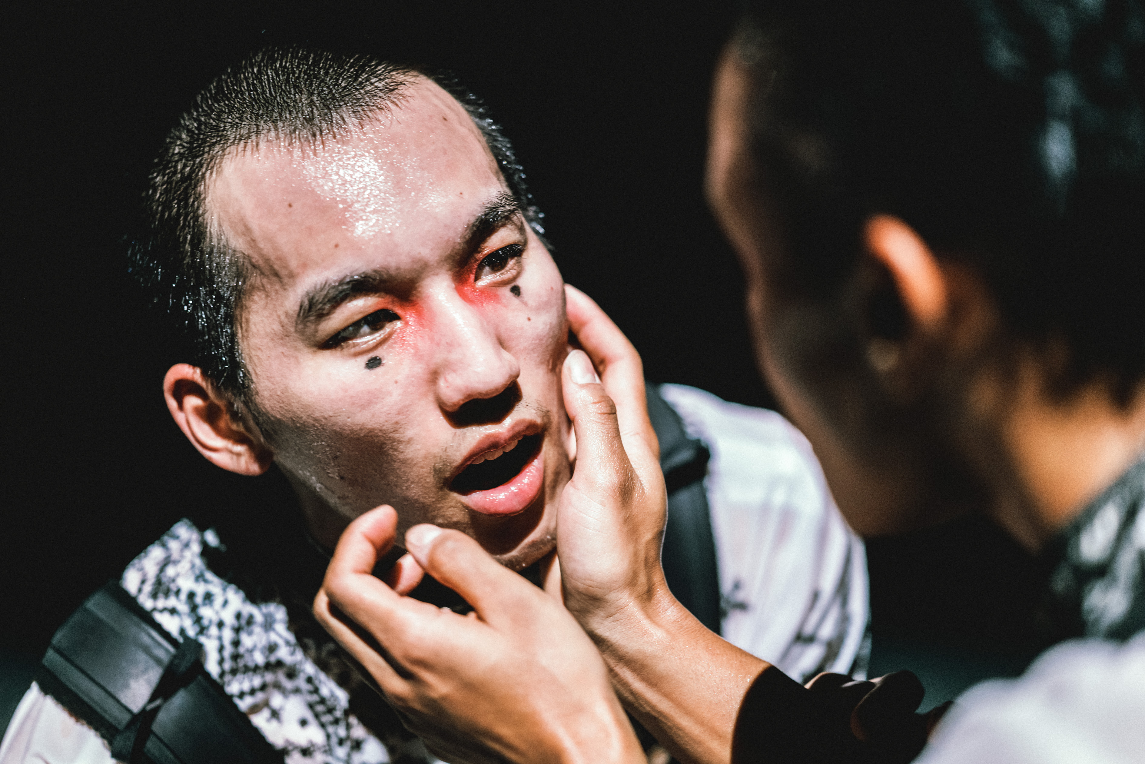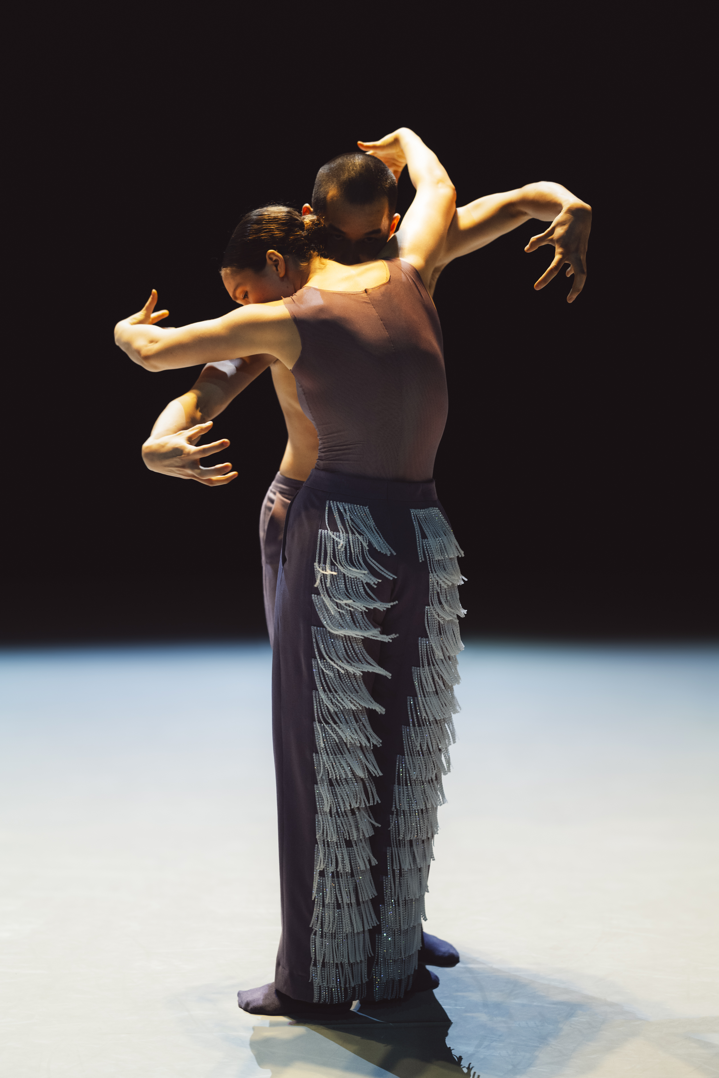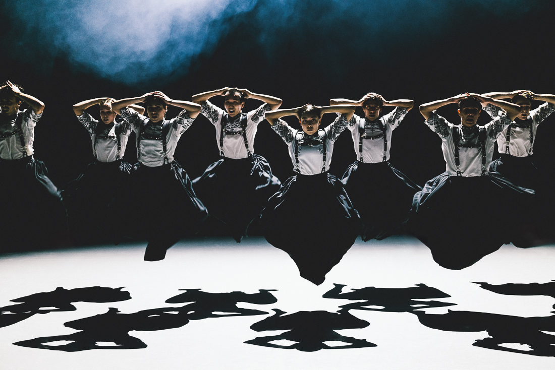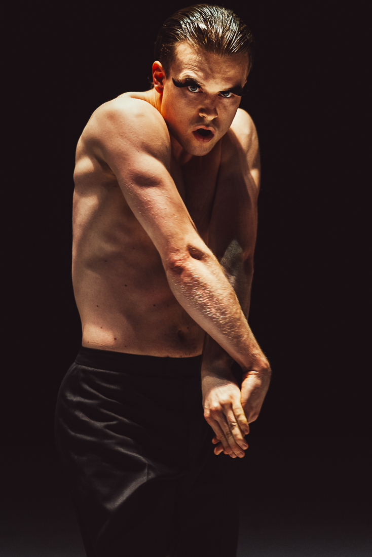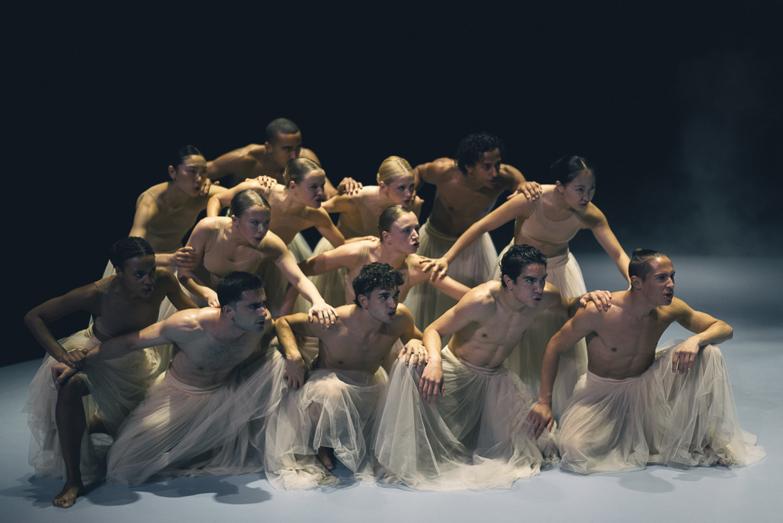 Un mix musicale che va dal rock-punk dei Placebo, ai romantici notturni di Schubert, alle note pianistiche del compositore russo tedesco Alfred Schnittke, permea Wir sagen uns Dunkle, “Ci scambiamo parole oscure”, creato nel 2017 dal coreografo tedesco Marco Goecke. Il movimento espressionista, nervoso, scattante, spigoloso, che contraddistingue il suo linguaggio, qui è moltiplicato nei dieci interpreti i cui gesti tagliano l’aria tra spasmi dei corpi, delle mani, degli arti.