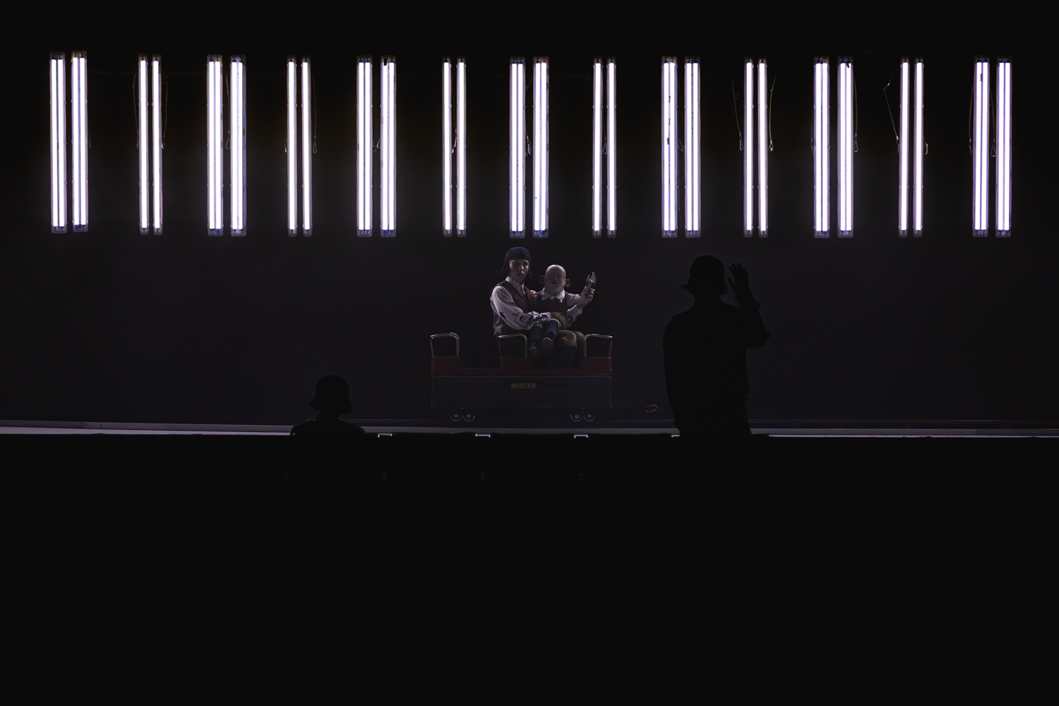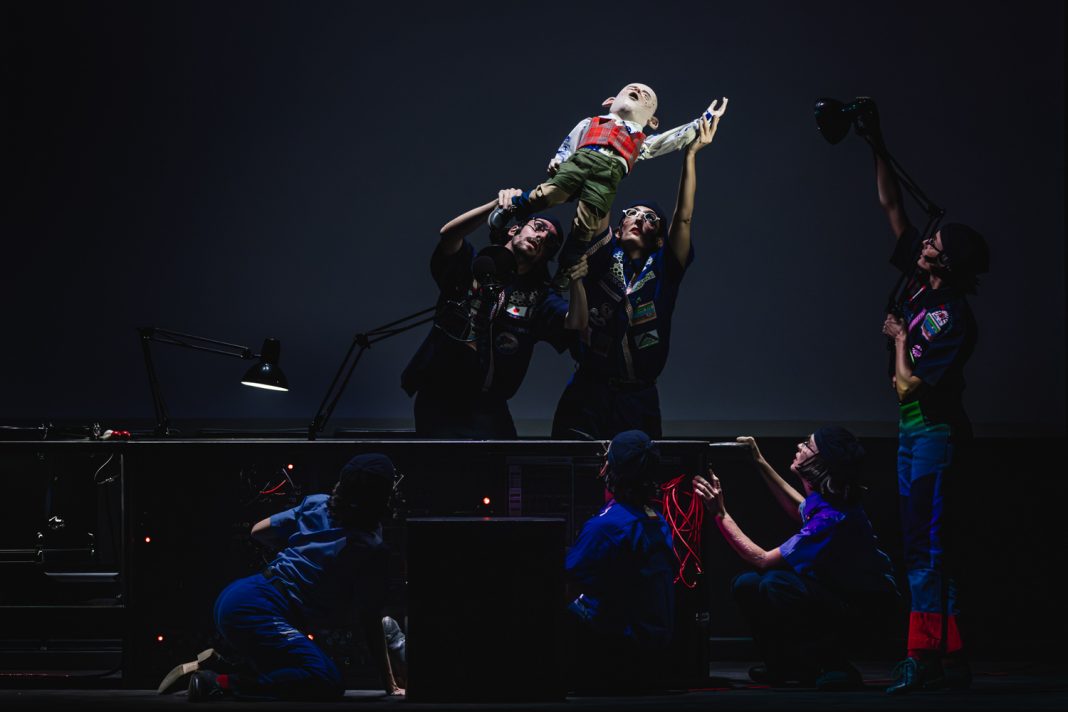 L’amalgama di estetiche di Morau fa riferimento al mondo tecnologico, ai videogame e ai cartoon giapponesi, ai disegni animati, alla fantascienza del cinema di Stanley Kubrick e a quello di David Lynch, alla musica popolare e contemporanea, alla marionettistica orientale (c’è un bambolotto parlante, “personaggio” centrale dello spettacolo, manovrato a vista, che in più momenti narrerà, da una voce fuori campo, la sua struggente storia). I movimenti dei danzatori, dai gesti disarticolati, spezzati, ricomposti, bloccati in ralenti e in tableaux vivant, scuotono la scena pulsante di visioni, con un trenino che l’attraversa, un astronauta che s’invola, fasci luminosi illuminanti la platea e luci stroboscopiche, bastoni in mano ai performer che percuotono tamburi: il tutto tra danze sincopate e suoni techno, siderali, compulsivi (musiche di Juan Cristóbal Saavedra), dove immergersi senza inseguire una linearità narrativa.