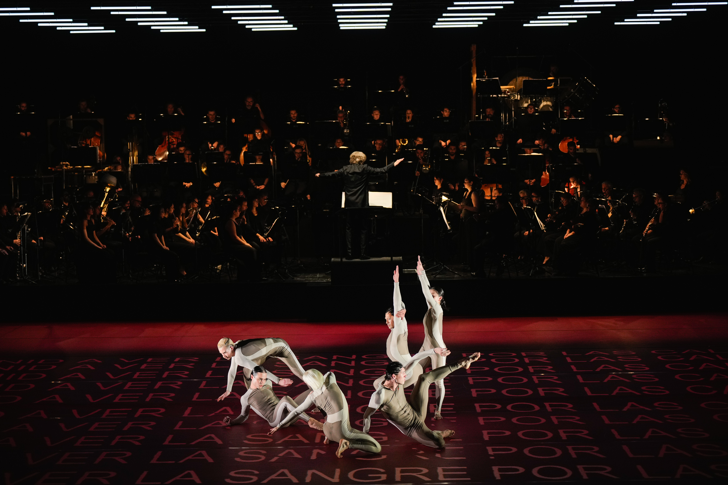 Di stampo neoclassico, la danza astratta di McGregor è un distillato di gesti e di movimenti disarticolati, rigorosi, fluidi, che si creano, si compongono e si disperdono in continuazione, formando gruppi, micro-gruppi, duetti e assoli, dove si osserva gli altri e si è osservati tra improvvisi unisoni e libere variazioni, e con un finale circolare che sembra celebrare un rito collettivo, mentre la proiezione ripetuta di un verso del poeta Pablo Neruda, «Venid a ver la sangre por le calles» (venite a vedere il sangue per le strade) che ricopre di luce rossa il tappeto del palcoscenico – evocazione degli orrori della guerra civile spagnola – ci riporta agli orrori del nostro tempo malato, ma lasciando uno squarcio di speranza, perché «…nella musica di Berio – dice McGregor nell’approccio all’opera – c’è una luce anche nel mezzo della violenza: la possibilità di creare delle costellazioni umane».