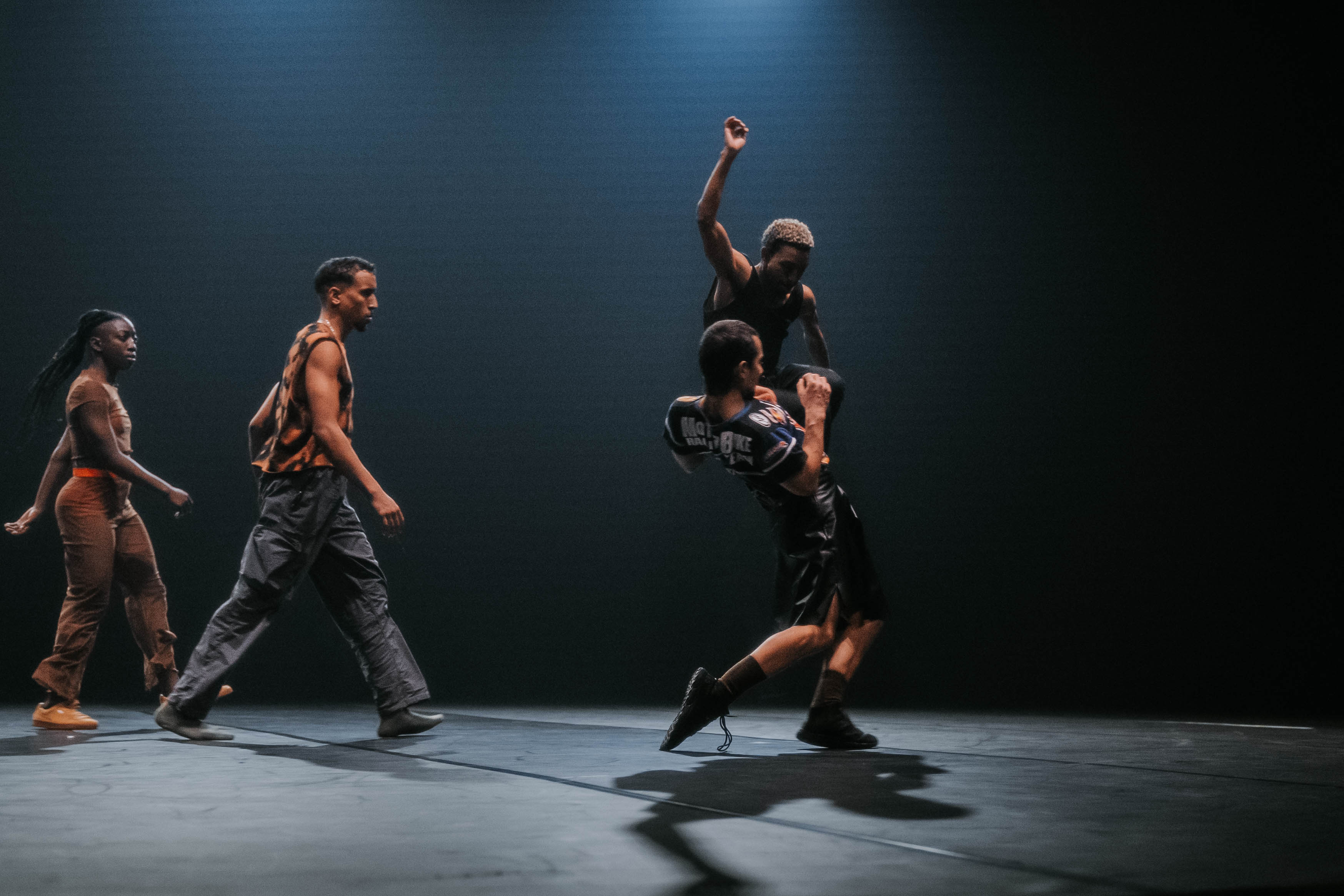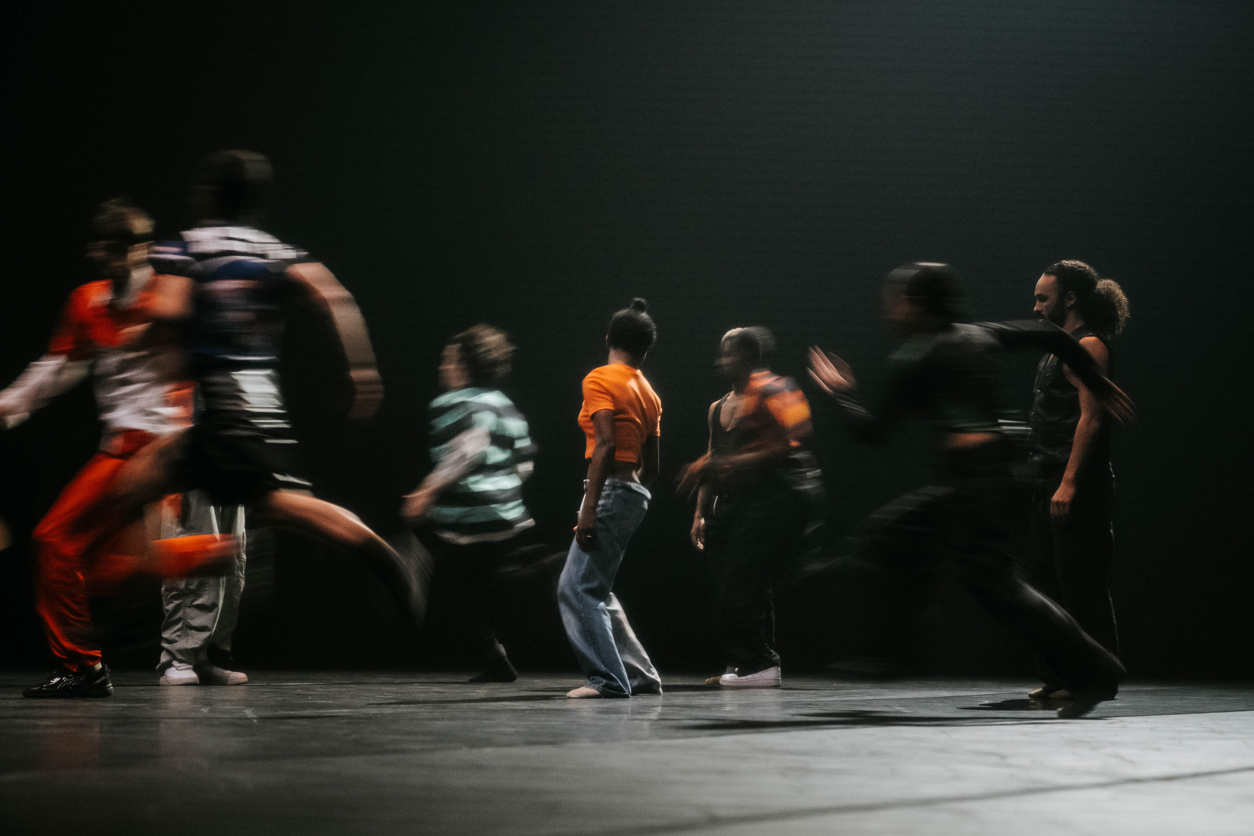 Sulla musica del compositore Mackenzy Bergile si creano cerchi, adunanze e smembramenti, camminate, corse, assoli, duetti, quartetti e coralità che ridisegnano lo spazio. Movimenti percussivi, di una qualità fluida, eterogenea, che l’energia dell’ensemble spalma e amplifica.
