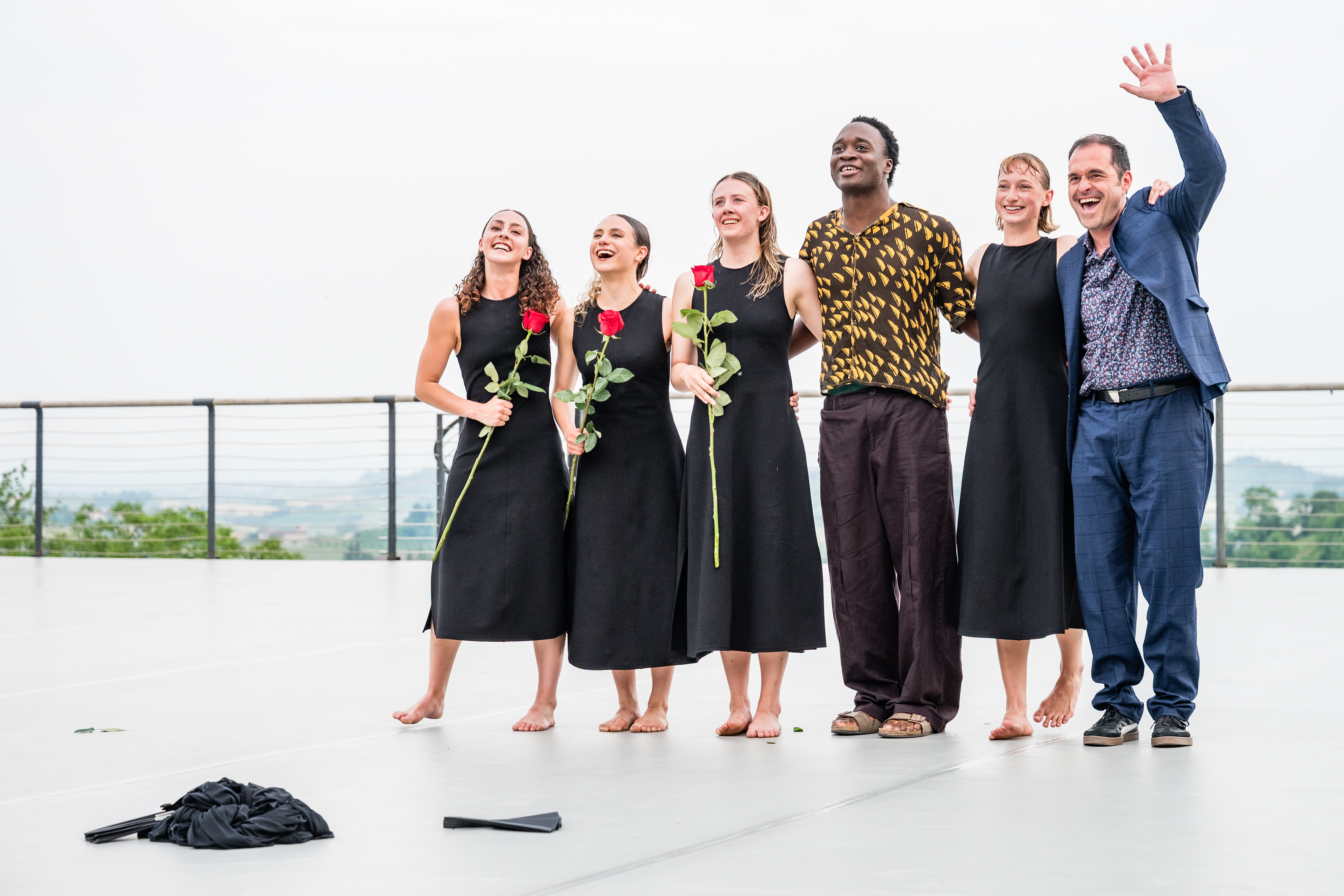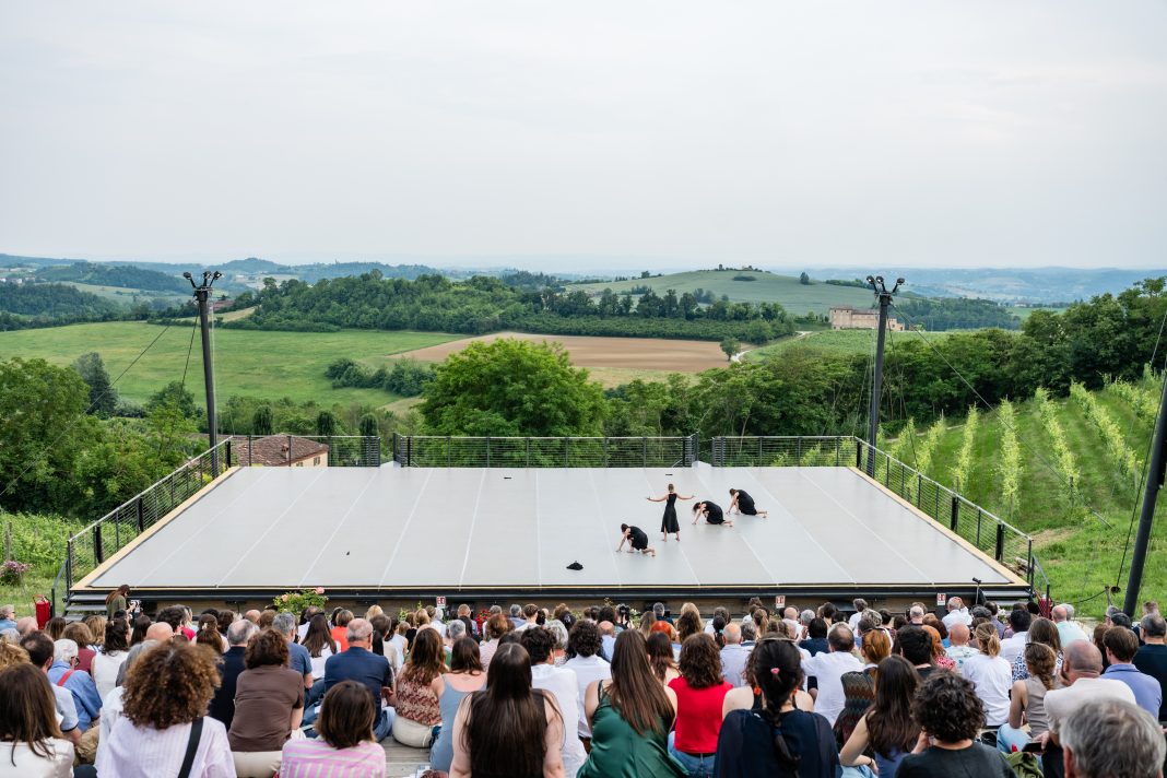 Con dei movimenti convulsi, le quattro interpreti, in alcuni momenti, sfiorano la trance dopo aver attraversato il pianto, prima il lamento e, prima ancora, lo sgomento davanti al dolore della morte. Riprende un antico rituale greco, quello delle donne che, per mestiere, vendevano il loro pianto straziante per i funerali incarnando il dolore collettivo (tradizione ancora viva in aree geografiche mediterranee e del nostro del Meridione), la coreografia de Le prefiche di Nnamdi Nwagwu. Selezionato dal bando internazionale Call for Creation di Orsolina28 Art Foundation (offrendo una residenza a coreografi emergenti under 35 per una creazione di gruppo), il giovane coreografo italo-nigeriano oggi attivo ad Amsterdam – e con una carriera internazionale in crescita -, ha presentato il suo nuovo lavoro sul grande palcoscenico all’aperto di Orsolina, un Eden nel cuore del Monferrato immerso in uno scenario naturale di incomparabile bellezza.