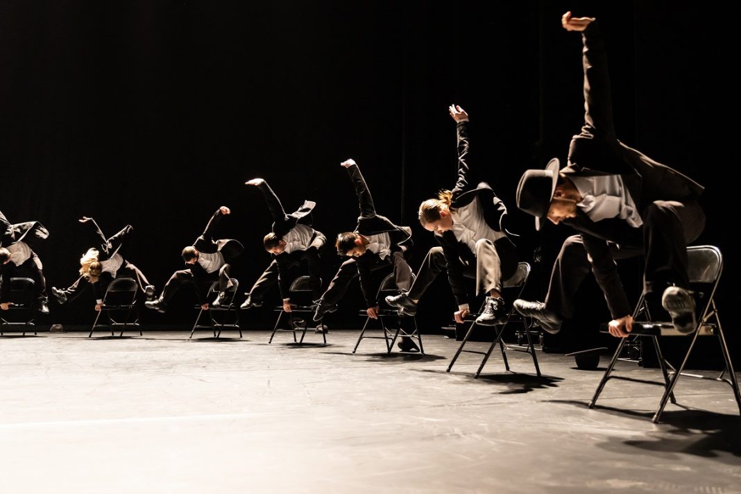 Minus 16, inossidabile capolavoro di Ohad Naharin, è una sorta di patchwork di precedenti lavori del coreografo israeliano. Vigorosa e abbagliante, sensuale e divertente, la coreografia alterna vitalistiche esplosioni di energia collettiva a momenti meditativi. L’assolo iniziale si allarga a tutto il gruppo, si restringe in passi a due e torna all’intero ensemble sull’onda di tante musiche – klezmer, barocca, mambo, techno sound e altre -; quindi passando al semicerchio di sedie dove, sopra e attorno, i danzatori si stendono, ripetono salti, cadute, acrobazie, mentre via via impetuosamente si spogliano buttando al centro cappelli, giacche, pantaloni, rimanendo in canottiera; fino a scendere in platea, rivestiti delle loro divise nere, scegliere persone tra il pubblico e invitarle a danzare sul palco a ritmo del cha cha cha. Compagnia, questa di Erich Gauthier, di virtuosismo mercuriale, che celebra con questa coreografia finale una festa piena di sentimento e gioventù, un’idea di umanità positiva. 145 minuti che sono volati via.