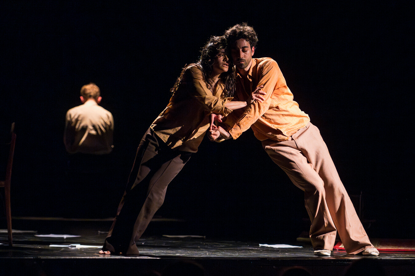 Nella danza ora esultante, ora furiosa, ora indulgente della coppia, scorre – tra il tessuto sonoro della musica ambient di Ben Frost, e di musiche e canzoni pop dell’epoca – una gamma di azioni e di stati d’animo che segnano il loro travaglio di quei lunghi giorni: dall’esultanza del rapimento, alle paure, alle discussioni, all’amore, all’intransigenza, fino ai ripensamenti della donna che vorrebbe tornare indietro e fermare la mano del partner dalla drammatica decisione finale di eseguire la condanna a morte di Moro. La coreografia scivola tra intrecci e sospensioni, crolli e rotolamenti, tenerezze e respingimenti violenti, tessendo una fitta trama relazionale tra i due corpi dei bravissimi performer, latori di pensieri e sentimenti che pulsano fino al gesto finale.