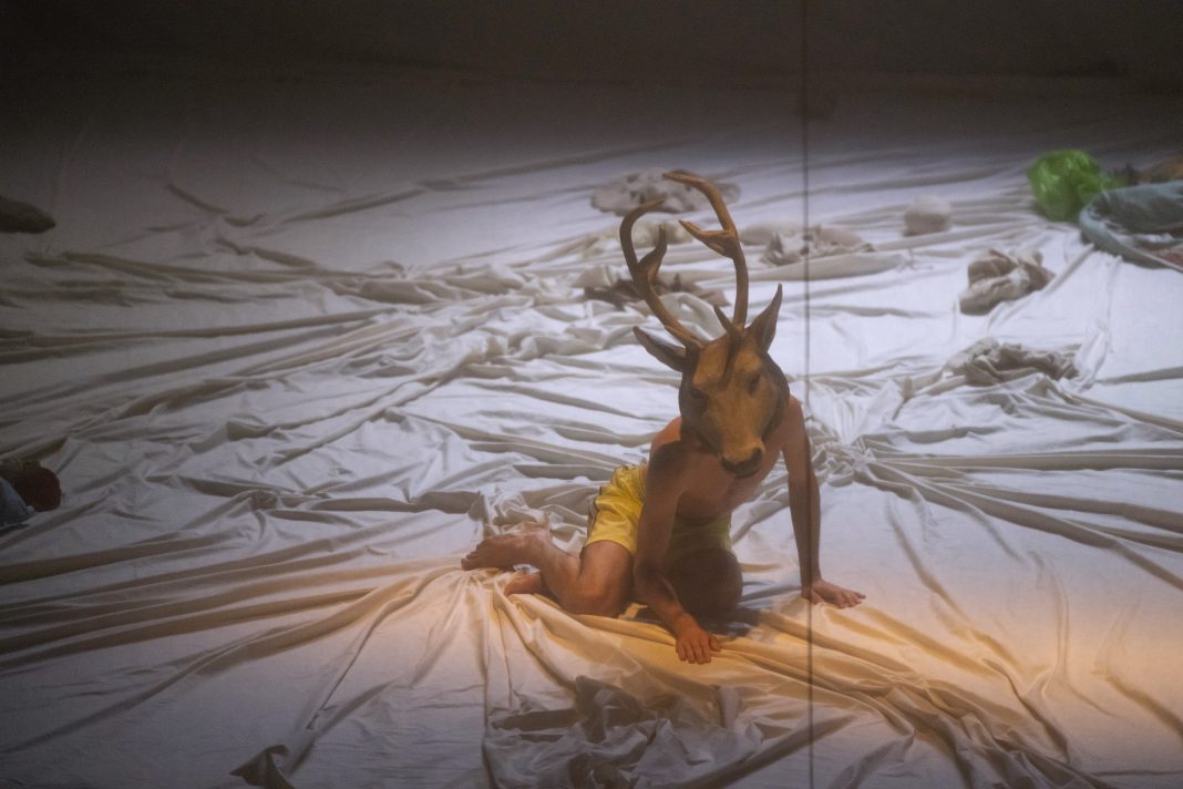 La danza solitaria, sul proscenio appena illuminato e pieno di brandelli, di un cervo antropomorfo che chiude lo spettacolo – figura, forse, di una possibile rinascita e guarigione -, si aggiunge ai tanti rimandi iconici che popolano il vocabolario anche visivo di Sieni (l’Arlecchino, i Satiri, l’immaginario pittorico di Michaël Borremans, le atmosfere di Giorgio Agamben…). Che in questa creazione coreografica, trovano una mirabile fusione. Per un nuovo inizio.