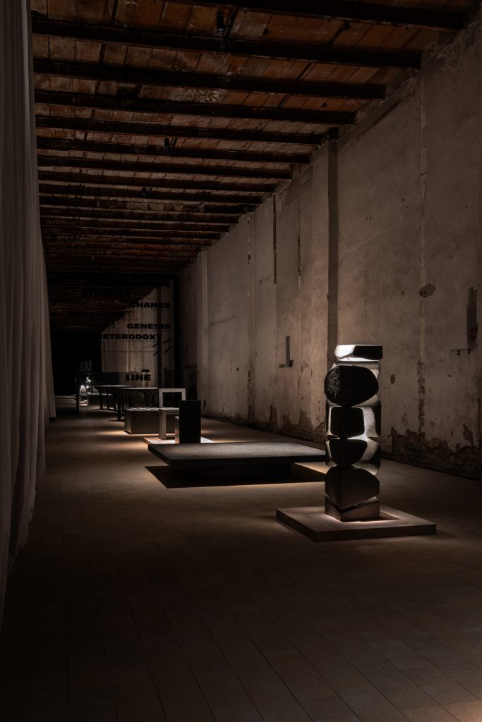 Il percorso si sviluppa in sequenza lungo la profondità del rettangolo, immerso in una luce scura e calibrata firmata PSLab. THE LINE sceglie una linea netta: un materiale, una domanda, una serie di variazioni, è un’occasione per capirne di più.
