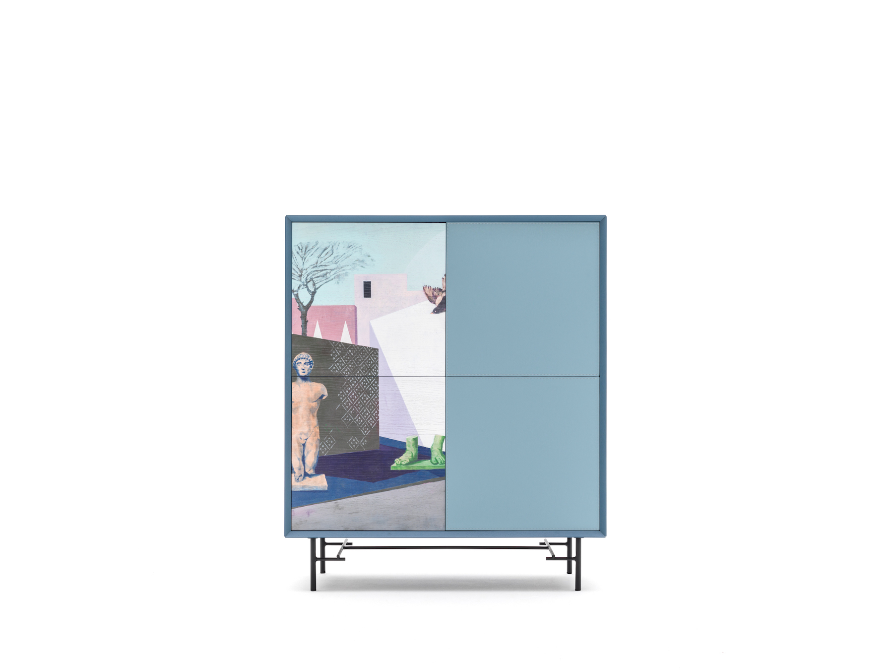 «Nel processo produttivo ogni immagine è stata legata a un mobile già esistente, è stato l’immaginario dell’artista a essere in qualche modo adattato a una struttura modulabile, realizzata con materiali diversi. Per la precisione, due tele di ogni artista sono state riprodotte sui pannelli di una madia e di una dispensa, quindi quattro mobili nati da questa combinazione, poi immessi sul mercato con una serie limitata di pezzi».