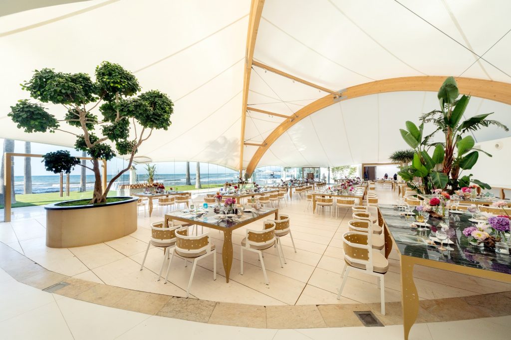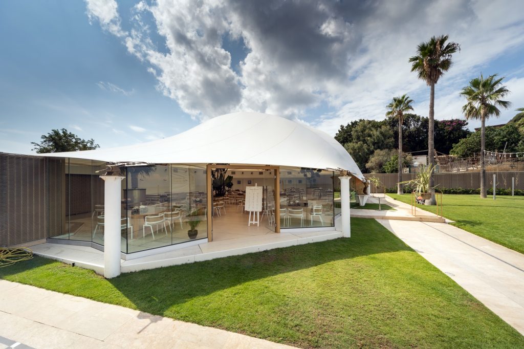 Frutto di questo lavoro è Shell, uno spazio aperto e leggero – che sarà presentato al pubblico il 10 ottobre alle 19 – in cui la sottile opacità della tensostruttura in pvc bianco e le vetrate aperte sulla spiaggia fanno da involucro e conchiglia a un ambiente luminoso in cui lo scambio tra esterno e interno è osmotico e continuo. «Con Luca abbiamo da subito pensato ad un luogo in cui stare bene noi», ha affermato Tibaldi che, reduce dall’inaugurazione del suo Giardino abusivo al Museo del 900 di Milano, ci ha raccontato: «Abbiamo immaginato una sorta di casa impossibile, di salotto traslato direttamente sulla spiaggia. Il luogo era già magico senza nulla, era stato scelto duemila anni fa dai romani e mi affascinava l’idea di poter lavorare e interpretare un luogo così carico di rimandi».