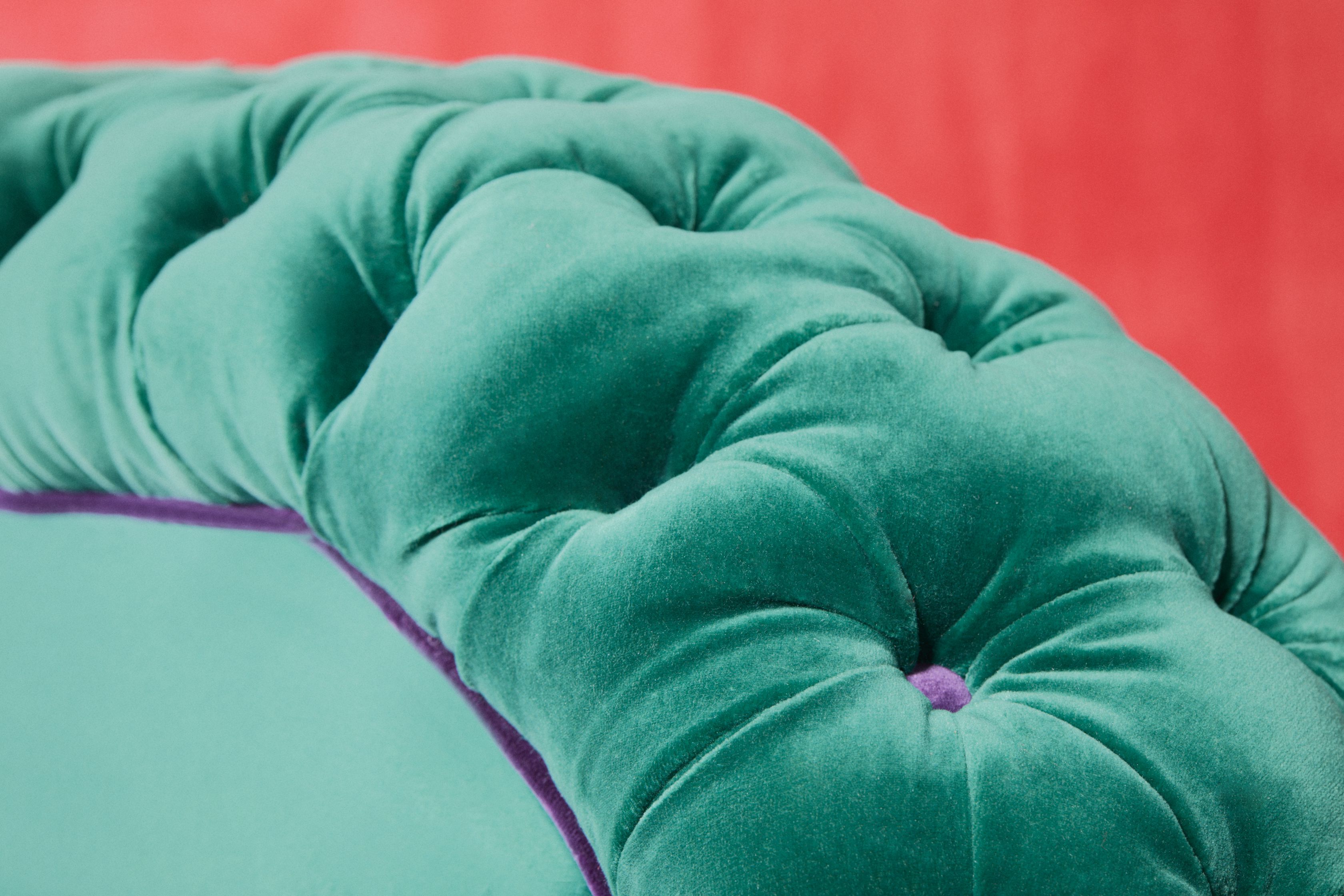 Ancora più marcatamente, il divano modulare Snaked è modificabile in molteplici circostanze: nelle associazioni cromatiche, nei tessuti. Di per sé, elementi come i divani modulari permettono un’infinita riconfigurazione dell’ambiente circostante, sia per adattarsi al contesto in cui viene inserito che alle sue funzionalità. Infine, il divano MissTake, una rivisitazione del classico Chester. Inventato in Gran Bretagna, si pensa, attorno al XVIII secolo, in questa variante è presentato in velluto, con un rivestimento prima trapuntato e poi plain. Una commistione tra l’antico e il contemporaneo, rivisitato attraverso gli occhi poliedrici del designer. Nel caso di entrambi i divani, Snaked e Misstake, le fibre utilizzate sono naturali e riciclate.