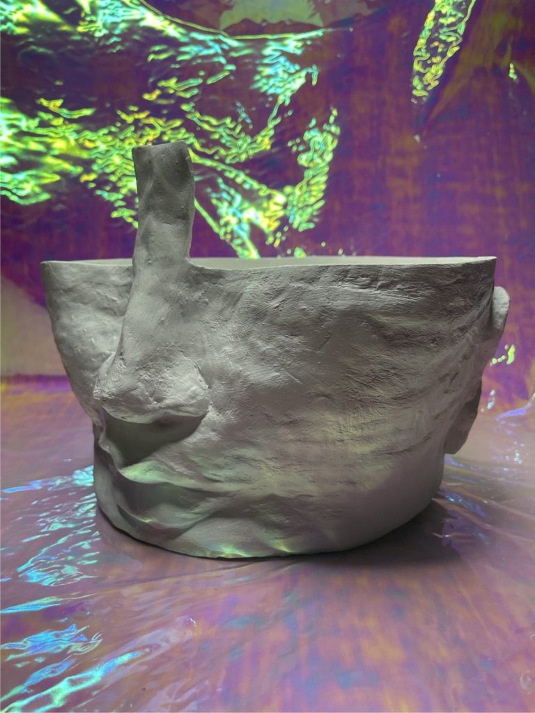 Abbiamo colto l’occasione per dialogare con Cloe Berni, curatrice della mostra insieme a Livia Ducoli, e Martina Taranto, artista e designer con base a Calatafimi Segesta, Trapani, che investiga l’intervento della natura e del tempo sui materiali e porta alla Galleria Sinopia il suo totem germogliato.