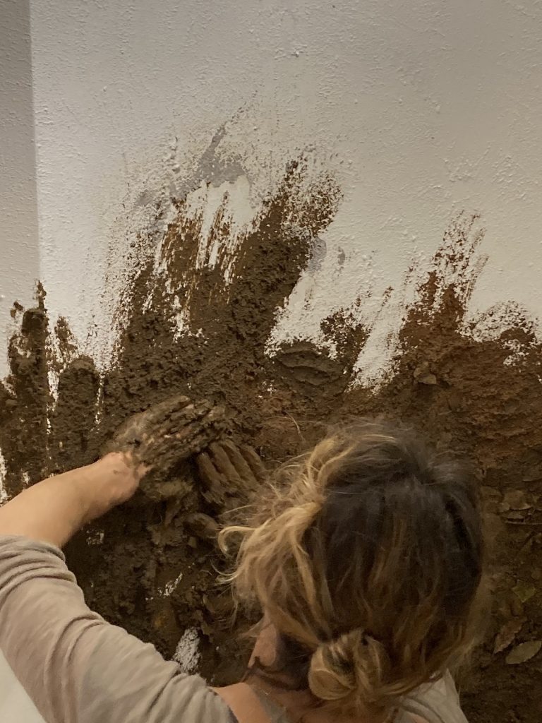 «La parola latina “lentē” significa lentamente, è un invito a ridurre il passo, a fermarsi ed esplorare con calma la dimensione domestica, per dedicare maggiore attenzione allo spazio che oggi per antonomasia definisce la qualità della nostra vita. In questo primo appuntamento, la Terra è al centro del percorso espositivo, è origine. Guidate da questo concept, insieme all’architetto Francesca Nardis, abbiamo disegnato una piccola stanza aperta sulla sommità. L’involucro esterno ha superfici bianche e pure mentre al suo interno ci si ritrova avvolti da pareti curve, sulle quali è intervenuta Isabella Breda, con una lavorazione in terra cruda. Questa micro-architettura rappresenta il nostro nucleo della Terra, nel quale rallentare e percepire, un’immersione nel suono, nell’odore e nella materia».