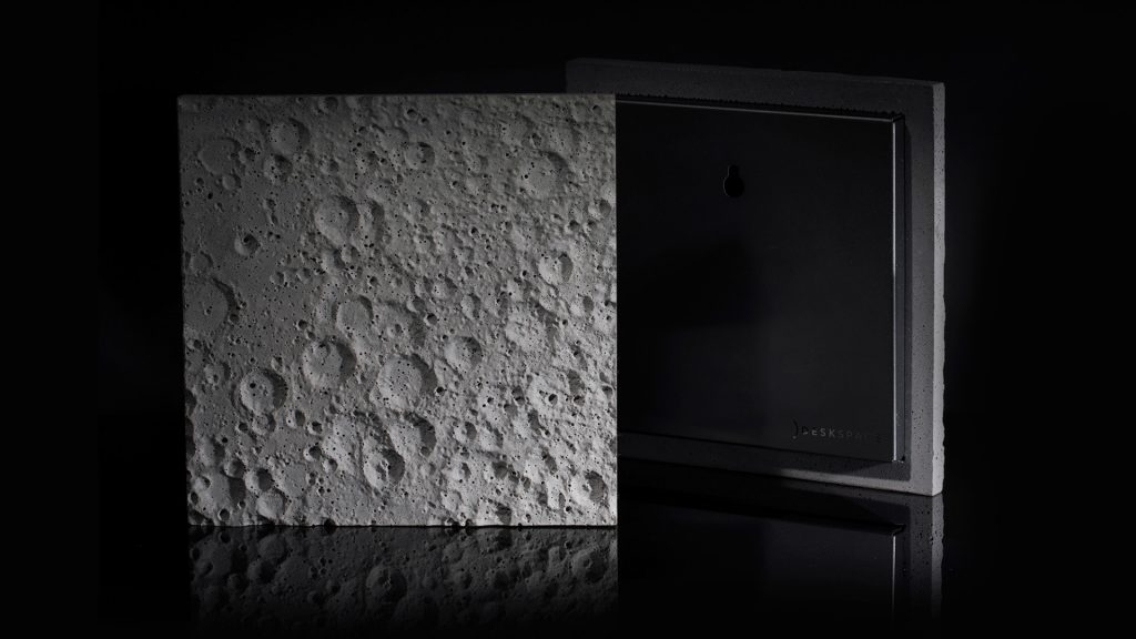 DeskSpace è il nome di un programma realizzato da una team internazionale di artisti e designer e finalizzato alla realizzazione di riproduzioni del sistema solare, con l’ausilio di materiali preziosi. Dopo la rappresentazione in scala dei pianeti del sistema solare e della sua stella madre, il Sole, DeskSpace propone fedelissime tipografie della superficie lunare. L’ambiziosa proposta è stata realizzata grazie all’ausilio dei dati del Lunar Reconnaissance Orbiter della NASA.