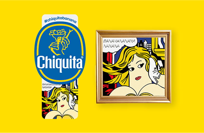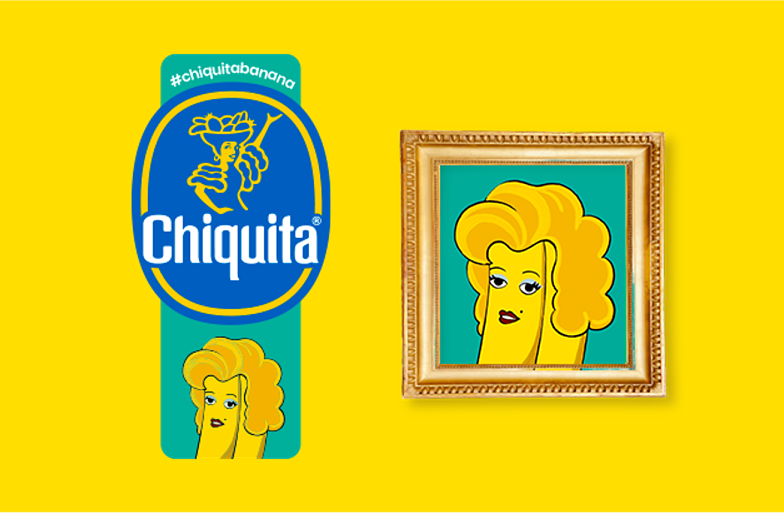 La storia inizia da 160 caschi di banane, acquistati in Giamaica, nel 1870, dal capitano navale Lorenzo Dow Baker, che li andò poi a rivedere a Jersey City. Nei primi anni del ‘900 la società si chiamava United Fruit Company e controllava vastissime piantagioni della Colombia e dell’Ecuador. Solo nel 1944 fu introdotto il nome Chiquita, usato poi come nome ufficiale della società. Nel 1963 l’idea definitiva: marchiare con una piccola etichetta ogni banana. Nel corso degli anni, il bollino è cambiato tante volte, spesso ospitando contributi artistici, come quello di Romero Britto, nel 2018.
