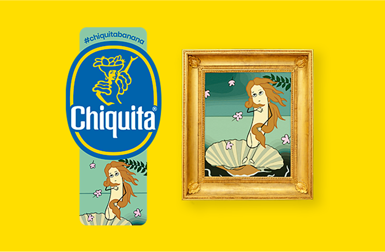 E così, sui bollini Chiquita ritroviamo la riservata Dama Banana con l’ermellino e il sorriso enigmatico della Monna Chiquita, ma anche la pop art di Roy Lichtenstein e di Andy Warhol, con una delle 50 delle serigrafie dedicate alla star del cinema Chiquita Monroe. E poi le foglie di banana d’oro e d’argento del Ritratto di Adele Bloch-Chiquita, di Gustav Klimt, La Nascita di Chiquita, di Sandro Botticelli, il Ritratto di una banana Chiquita con cappello, di Amedeo Modigliani, L’étoile banana Chiquita, di Edgar Degas. A proposito di frutta esotica, non poteva mancare l’Autoritratto in buccia di banana Chiquita, di Frida Kahlo.