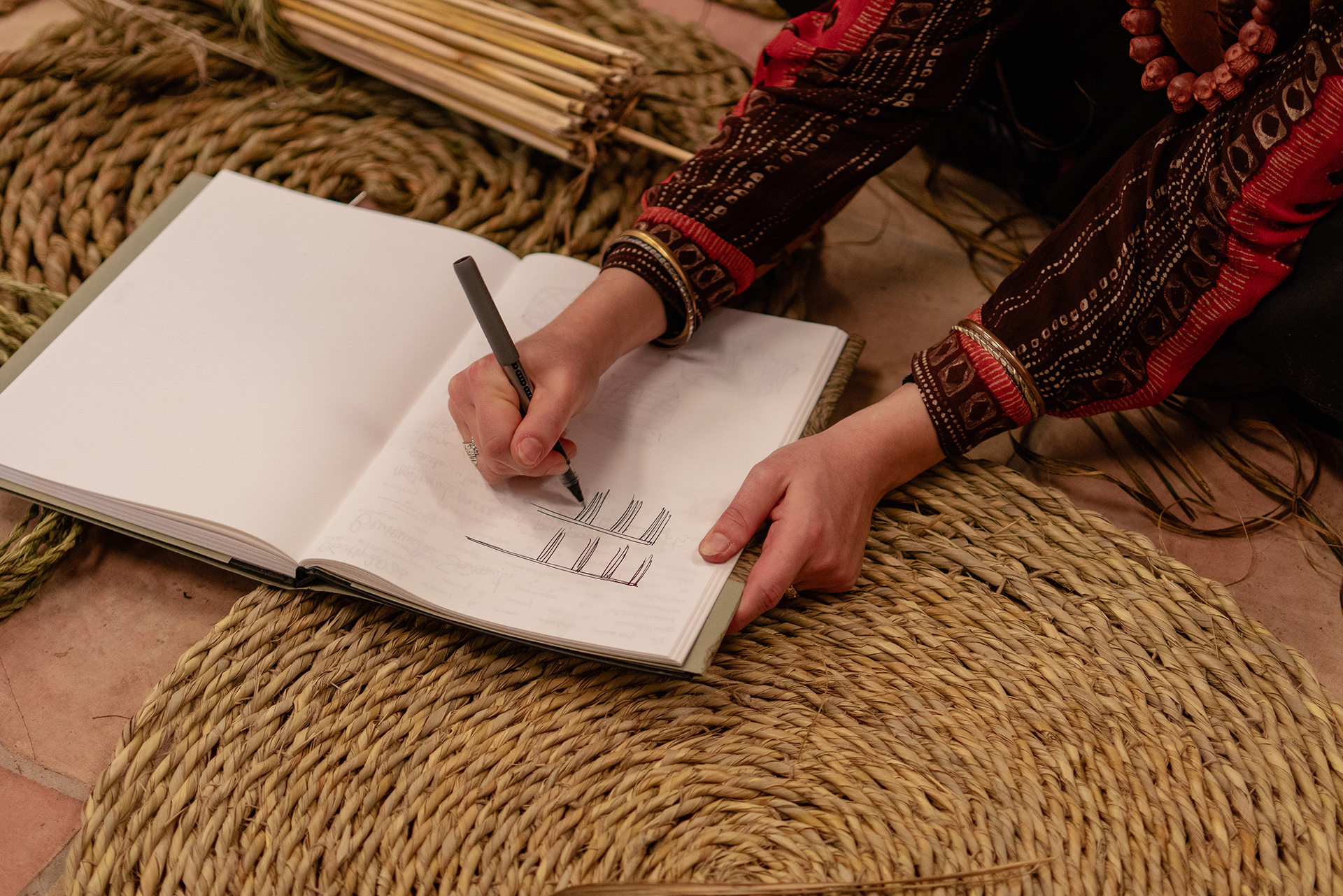 Davide Tagliabue, nelle due settimane di residenza, ha lavorato fianco a fianco con le libbanare conducendole in un percorso di sperimentazione su nuove modalità di cucitura.