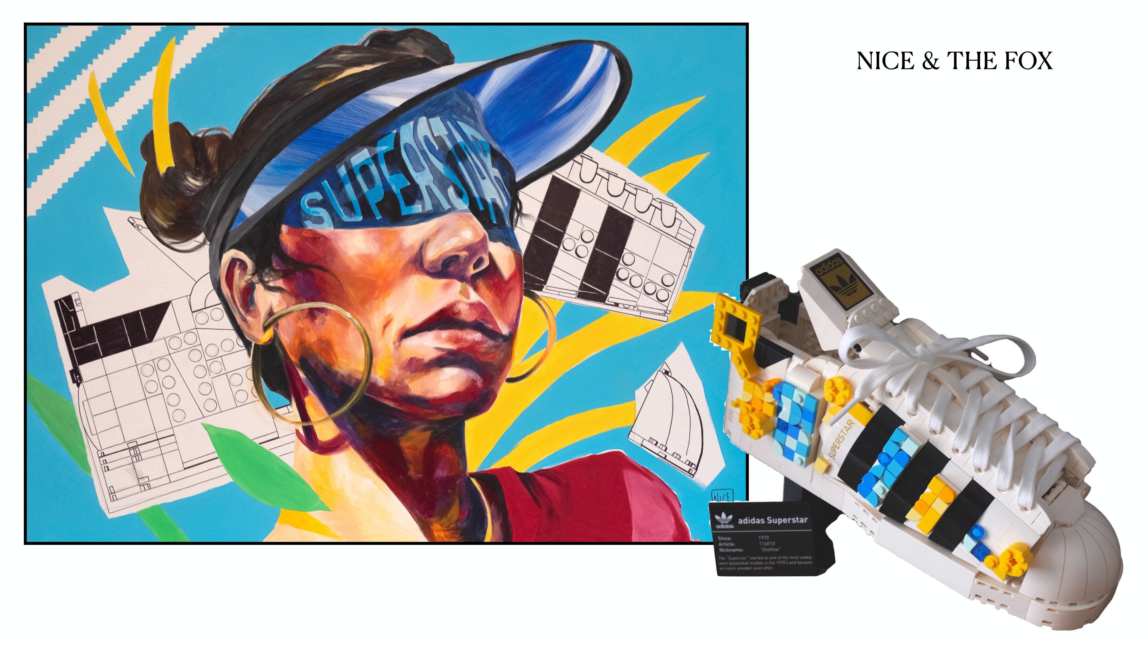 «Sono felice di partecipare a questo progetto creativo promosso da LEGO e adidas perché sono due brand mitici che hanno accompagnato la mia infanzia e la mia adolescenza», ha commentato l’artista torinese Francesca Nigra alias Nice And The Fox. «Giocattoli anni 80 e sneakers vintage compaiono nelle mie creazioni da sempre, perché la mia ricerca artistica si nutre di reminiscenze d’ infanzia, persistenza della memoria, processi identitari, decostruzioni», ha detto Percy B.