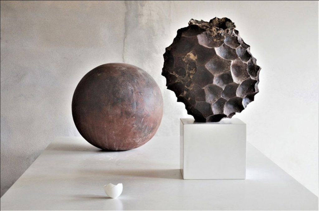 Così, in tre sale, troviamo opere come Cronos: grande betulla di Maria Grazia Tata, che rappresenta il mutare delle stagioni e il succedersi dei cicli naturali, o come le collezioni Pulse e Bocciolo di Sabine Pagliarulo, lavori in ceramica dall’aspetto organico, che richiamano simbolicamente l’aprirsi di un fiore. E poi, le collezioni Grafemi e Ritmiti di Angela Palmarelli, realizzate a partire da lastre di argilla che riproducono stratigrafie e segni impressi nella materia.