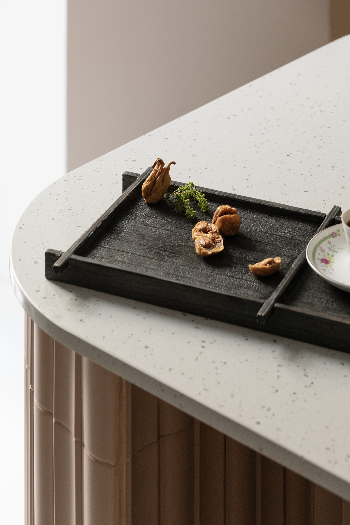 Tutto ciò accade, per esempio, in Erbaria, rivestimento per interni che imprime nelle superfici la sagoma di piante in via d’estinzione, trasformando il design in archivio della biodiversità. O in Licheni, dove gli scarti lapidei vengono abitati dalla natura, che torna a crescere tra le crepe della pietra: un oggetto che non controlla, ma accoglie. In Prometeo, il legno bruciato secondo la tecnica giapponese dello Shou Sugi Ban diventa memoria di un fuoco addomesticato, un simbolo di custodia più che di distruzione. E in Vasa-bi, sistema di vasi ispirato all’idraulica tradizionale mediterranea, il design si piega a una funzione primaria, ovvero trattenere e restituire l’acqua, trasformando la cura in gesto progettuale.