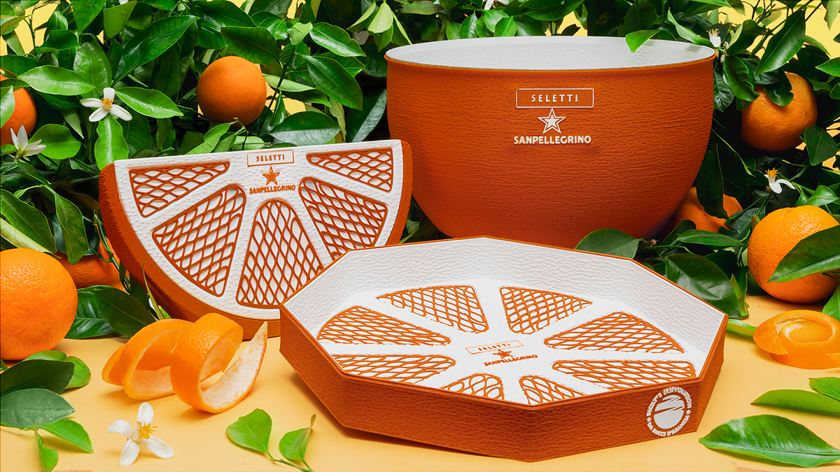 La rivoluzione iniziata dalle Bibite Sanpellegrino parte dalle bucce di arancia che la compagnia utilizza per i suoi prodotti ed è la Sicilia, uno dei luoghi di origine degli agrumi, a dare inizio al progetto: “Sicily’s (R)evolution” è un progetto innovativo che unisce sostenibilità e creatività, le bucce delle arance recuperate dalla produzione delle stesse Bibite diventano oggetti di eco-design, a firma di Seletti. La collezione è realizzata a partire da biopolimeri e si compone di una lampada da tavolo, di una glacette e di un vassoio, ognuno dei quali rimanda alla Sicilia e ai suoi eccezionali prodotti, richiamandone colori e texture.