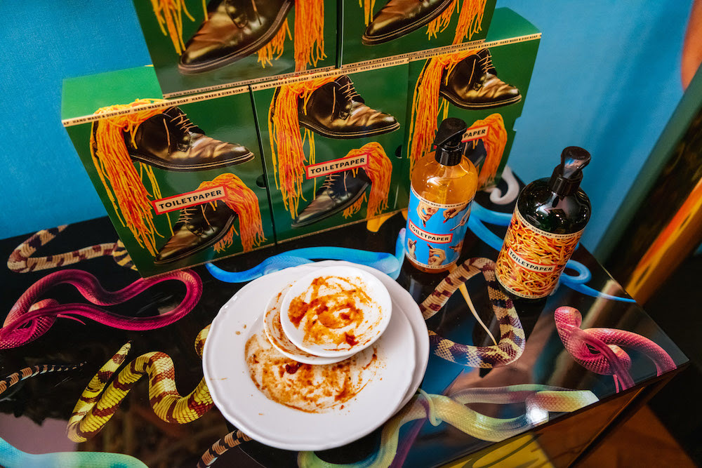 «La collaborazione con TOILETPAPER è un progetto dalla forte carica innovativa che rappresenta una sfida molto interessante per noi», ha dichiarato Tommaso Pacini, Presidente de LA BOTTEGA, azienda che fornisce i più prestigiosi hotel del mondo, quali Four Seasons, The Peninsula, Mandarin Oriental, St. Regis, J.K. Place, Faena, Rocco Forte, con linee cosmetiche personalizzate e sartoriali.