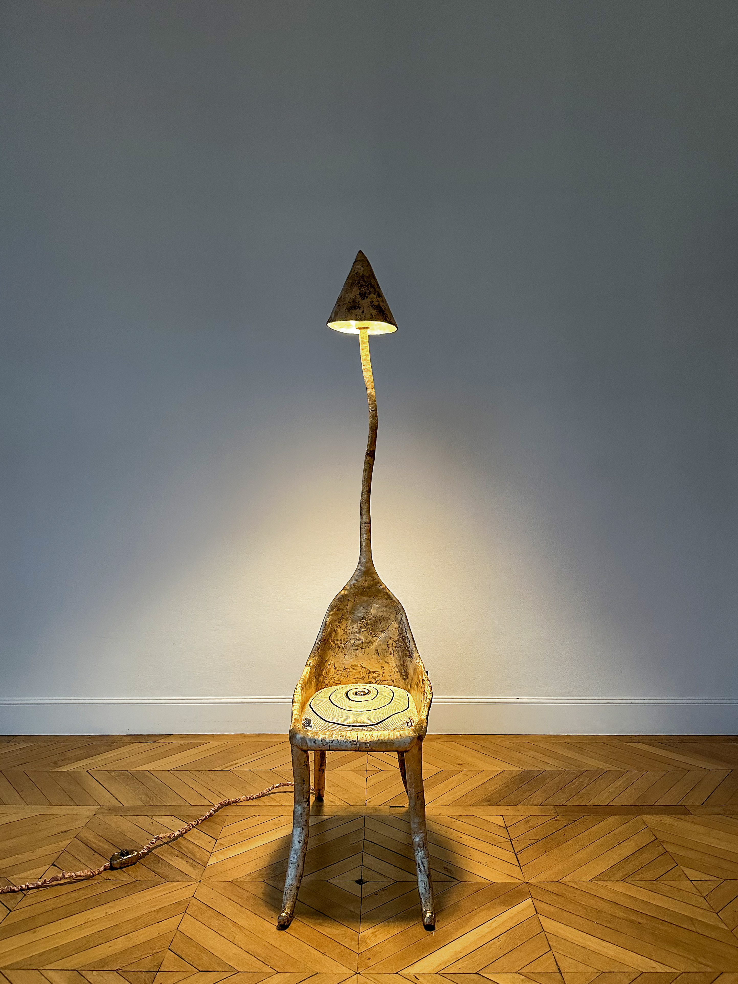 Ad arricchire il panorama delle collaborazioni tra moda, arte e design, Daniel Roseberry, direttore creativo di maison Schiaparelli, accoglie l’eredità di Elsa continuandone la tradizione interdisciplinare con una nuova collaborazione artistica. Così, dall’amicizia e stima reciproca Roseberry ha lavorato con l’artista F Taylor Colantonio per realizzare una serie di mobili-sculture in bronzo, rivestiti con preziosi ricami in seta.