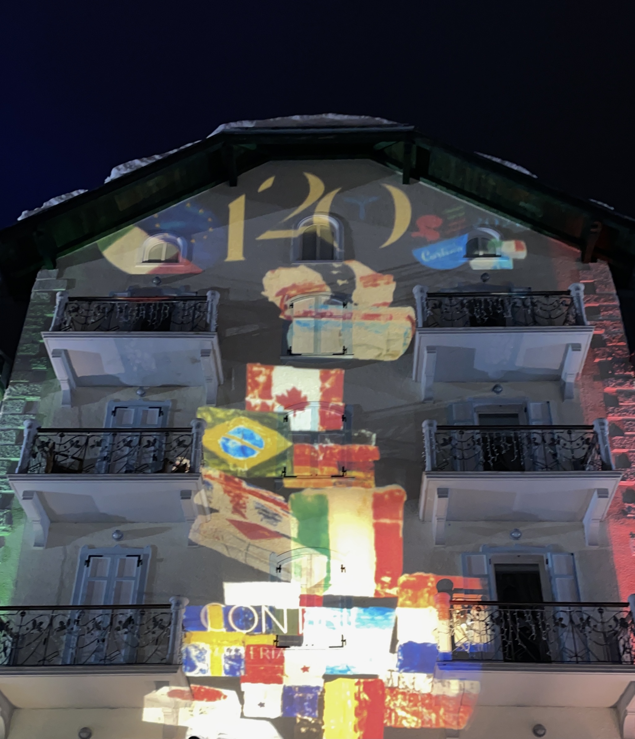 Galleria d’Arte Contini: la proiezione di Mario Arlati sulla facciata dell’Hotel Cristallo