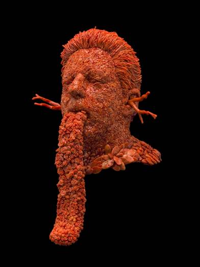 Jan Fabre, Self-portrait with the Tongue of Love, 2019, corallo prezioso di profondità, pigmenti, polimeri