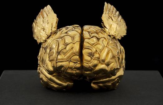Jan Fabre, Golden Human Brain with Angel Wings, 2011, bronzo silicato, oro 24 carati, Nero Assoluto