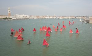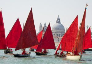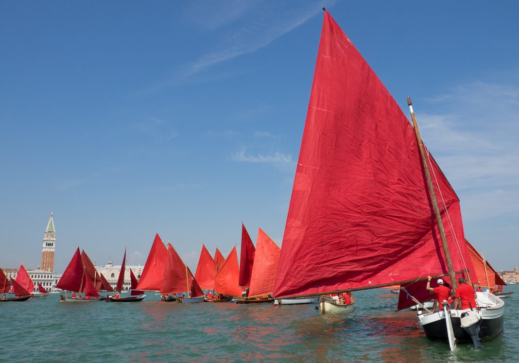 Cinquantadue barche dalle vele rosse, ma ogni tonalità è diversa l’una dall’altra. Cinquantadue barche con il colore del cuore, dell’amore, della passione e dell’urgenza che solcano il Canale della Giudecca e il Bacino di San Marco per dirci che Venezia è l’isola del tesoro: artistico e ambientale. E che, come tutti i tesori, va omaggiato e rispettato e non sfruttato allo sfinimento.
