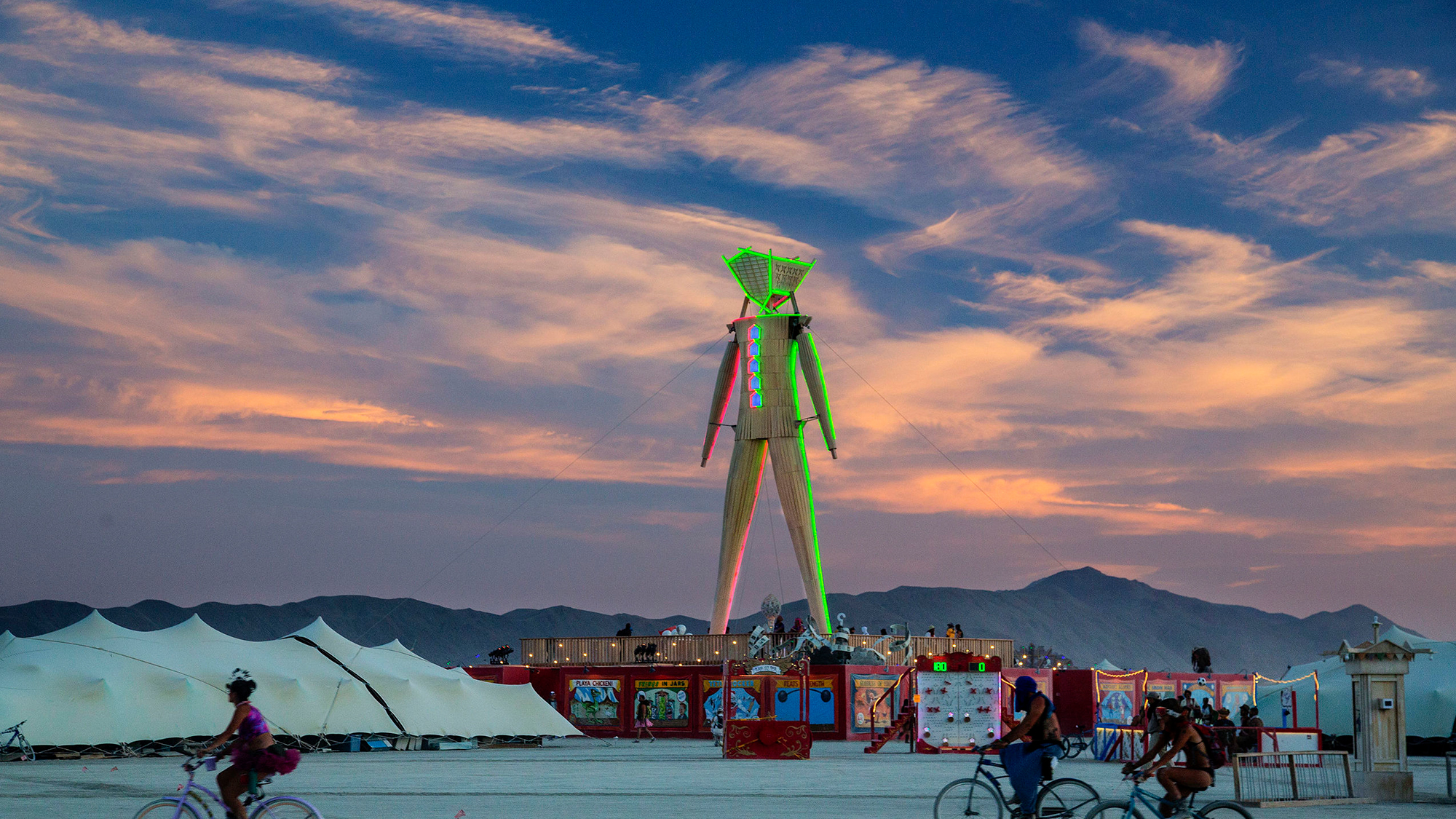 L’attrazione principale, oltre alla presenza di moltissime celebrities, sono da sempre le gigantesche installazioni, quest’anno ispirate al tema dei Walking Dreams”. Il porto dei tarocchi, il drive-in intergalattico e il treno fantasma sono solo alcuni degli spettacolari “sogni camminanti” di questa società alternativa contemporanea che appare e alla fine del Festival scompare come per magia.