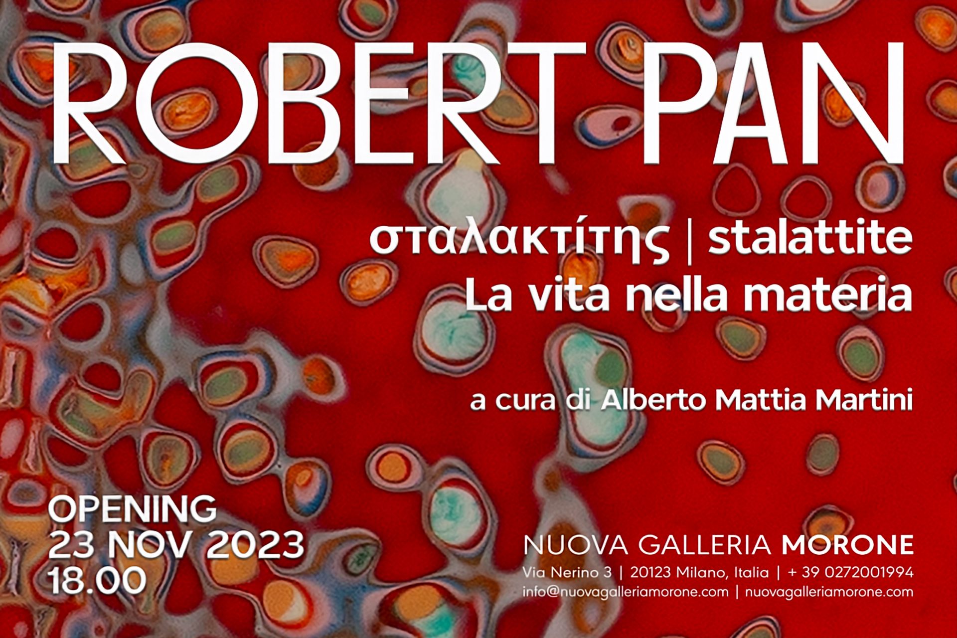 Nuova Galleria Morone presenta la mostra personale dell’artista Robert Pan dal titolo Σταλακτίτης | stalattite, la vita nella materia: un nuovo ciclo di opere inedite, esito degli ultimi due anni di lavoro.