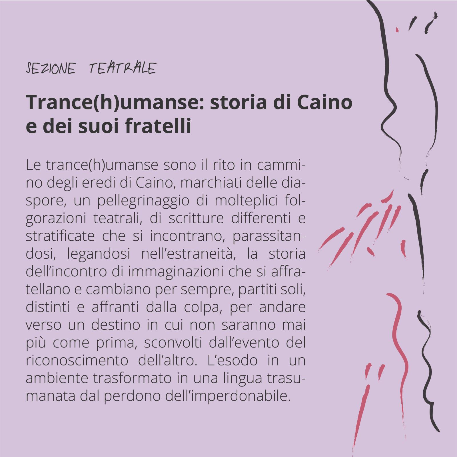 Un progetto di ri-mappatura memoriale/immaginaria dei quartieri di Ferentino, con l’intenzione di rivitalizzare e riempire gli spazi di nuovi simboli attraverso un percorso che segue le tracce nomadi degli eredi di Caino, dall’esilio teatrale itinerante ai “falò” degli incontri letterari e oltre.