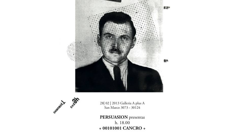 ‘00101001 Cancro’: performance, videoinstallazioni, materiali e progetti grafici invaderanno lo spazio della galleria per una giornata.