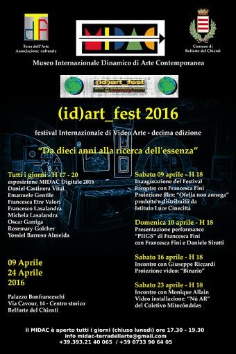 La stagione artistica 2016 del MIDAC a Belforte del Chienti, si apre con il primo evento dell'anno: (id)art_fest 2016, decima edizione del Festival Internazionale di Video Arte, ideato e curato da Terra dell'Arte (www.idartfest.org).