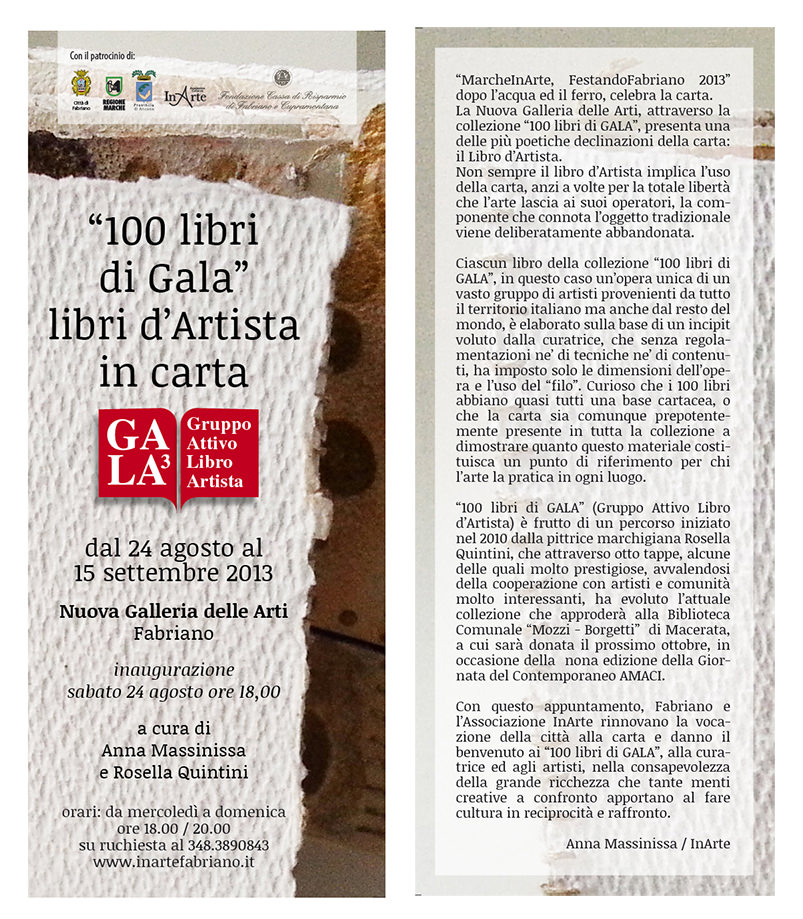 La mostra “100 libri di Gala” fa parte dell’ultima fase della rassegna “Festando 2013”, fase dedicata a “La carta, il metallo, il genio, la città”