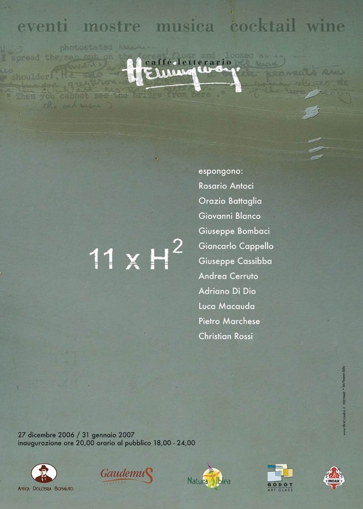 Dopo il successo della prima edizione torna “11 x H²”, la mostra collettiva (il titolo è stato “elevato a potenza” visto che si è al secondo anno) curata da Giorgio Cavallo, organizzata dal e nei locali del Caffè letterario Hemingway di via Grimaldi 36, a Modica.
