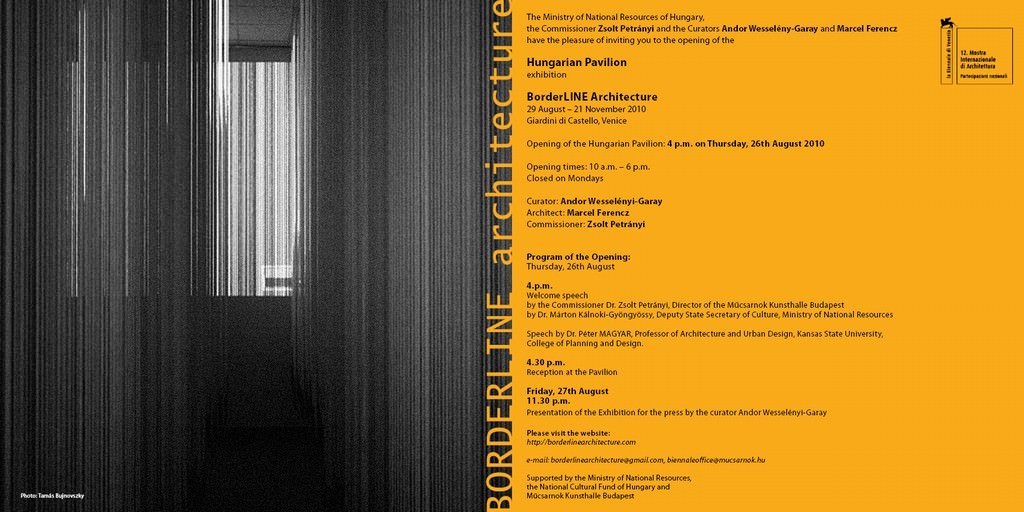 At the International Architecture Exhibition of the Venice Biennale. Hungary will participates with a BorderLINE Architecture project authored by two young architects, Andor Wesselényi-Garay and Marcel Ferencz.