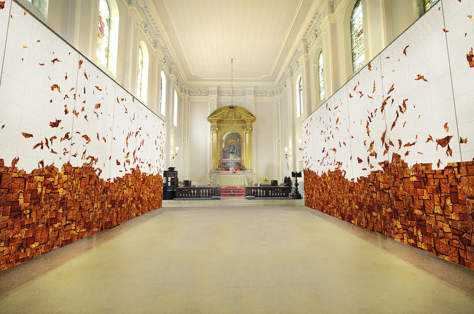 s'innalzano verso la volta. Le foglie nelle loro tonalità marrone e giallo ocra, si