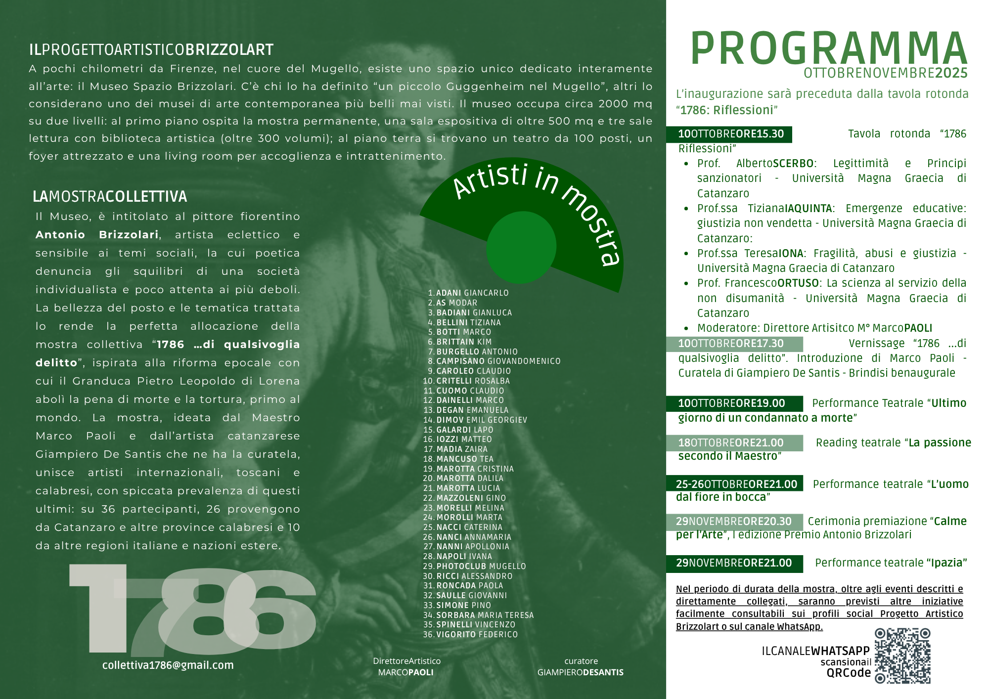 Dal 10 ottobre al 30 novembre 2025 il Museo Spazio Brizzolari – Progetto Artistico Brizzolart, ospita 36 artisti creando un ponte tra Calabria e Toscana.