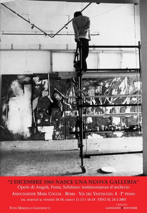 All’inizio degli anni Sessanta a Roma si delineano due nuove correnti di ricerca: da un lato Uncini e Lo Savio, dall’altro Angeli, Festa e Schifano. Mara Coccia incontra questi ultimi fin dall’inizio della sua attività e lo documenta con questa mostra