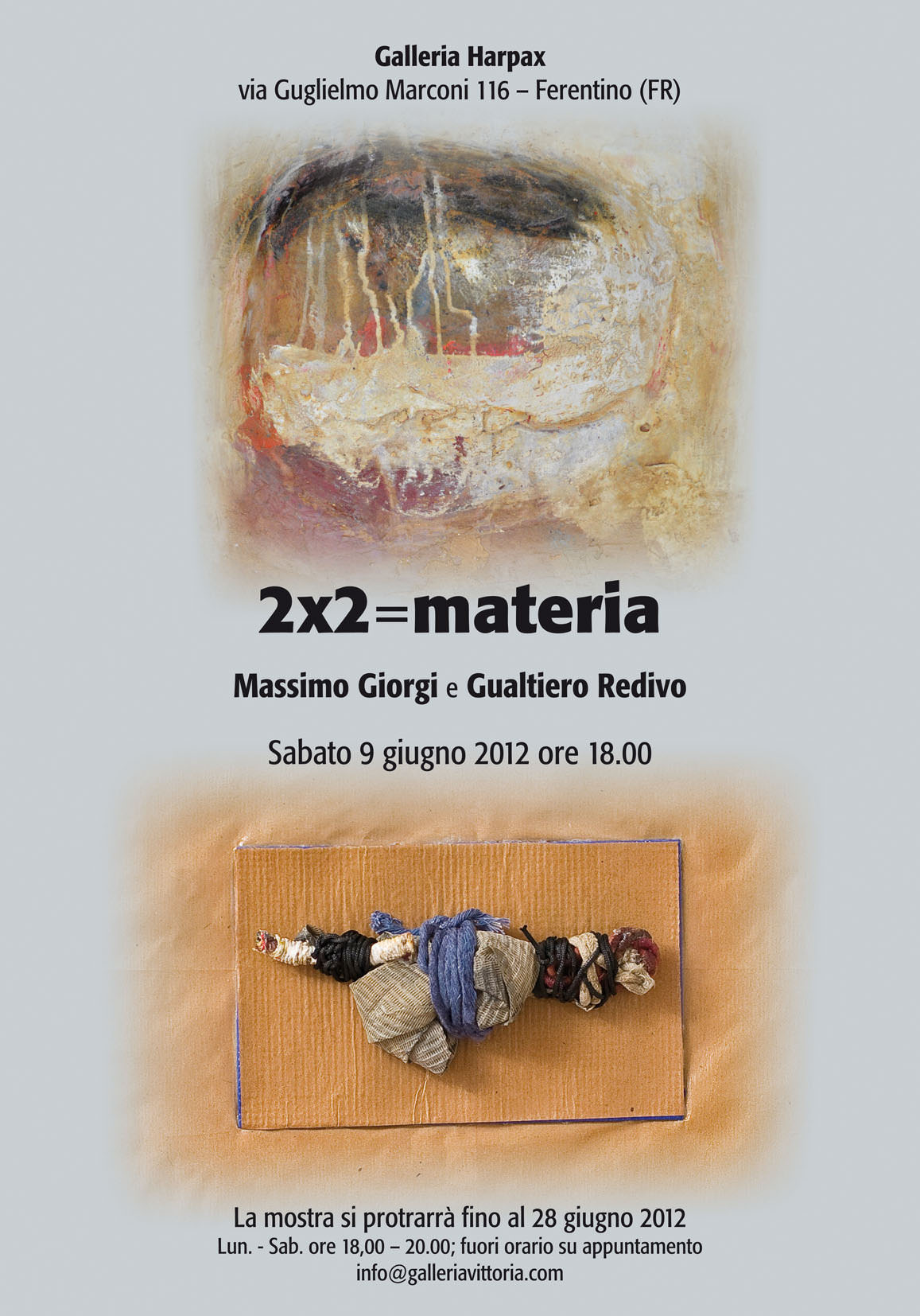La mostra è presso la Galleria Harpax - via G.Marconi, 116 – Ferentino (Fr)